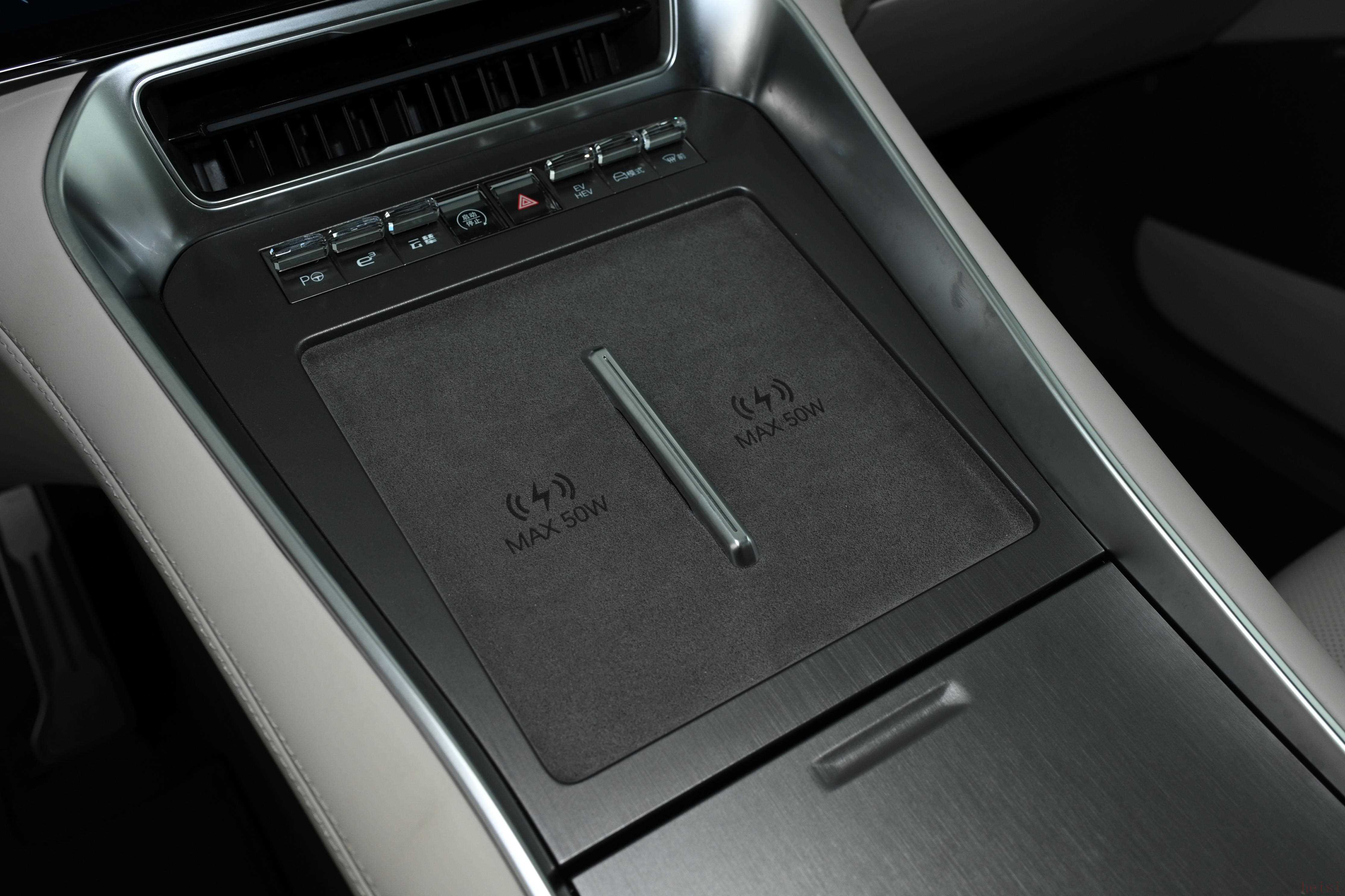 腾势 N8L DM 在储物设计上,真的把家庭用车的实际场景考虑得很周到,到处都能看到贴心的小细节。中控台下方采用了悬浮式设计,不仅看起来很轻盈,不显得压抑,还多出了一块实用的储物空间,平时放个手提包、购物袋,或者把换下来的鞋放在这里,都很方便,不用再把东西堆在座椅上占地方。