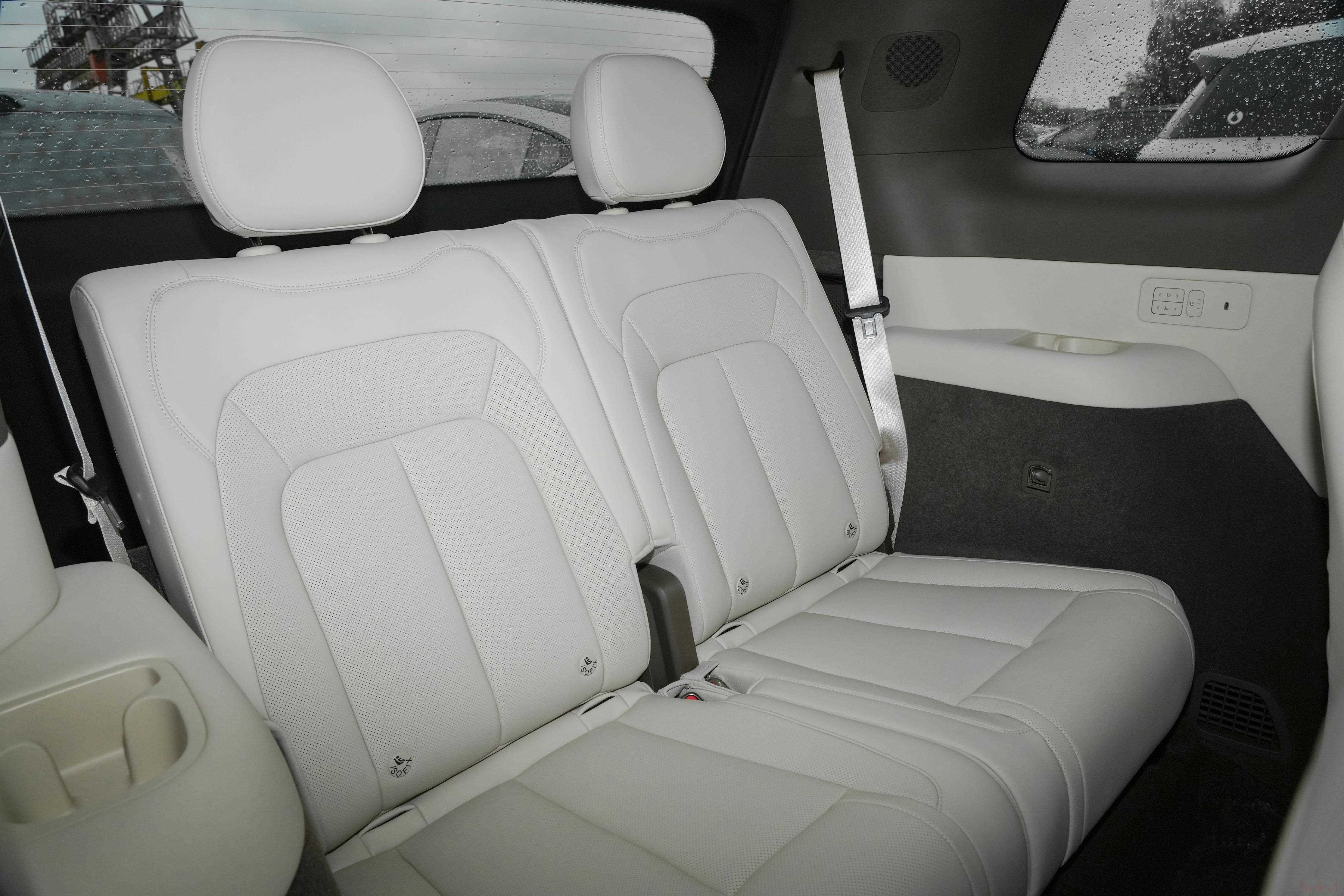 如果说外观是吸引人的初印象,那空间才是腾势N8LDM真正打动家庭用户的核心。很多六座或七座SUV的第三排常被诟病为“应急座”,但在N8L上,第三排座椅支持前后100mm的独立滑移,靠背角度也可电动调节,并配备加热功能。即便是身高190cm的成年人,也能找到舒展的坐姿。