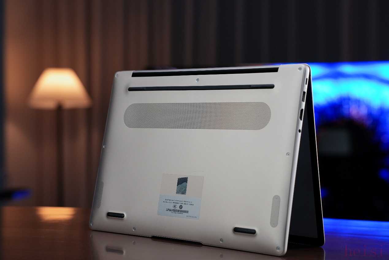 "外观设计:" 这款笔记本电脑采用了极简主义的设计风格,轻薄便携。机身线条流畅,边缘圆润,给人一种优雅舒适的视觉感受。特别值得一提的是,它的键盘和触控板采用了波点设计,将艺术元素融入到日常使用的细节中。