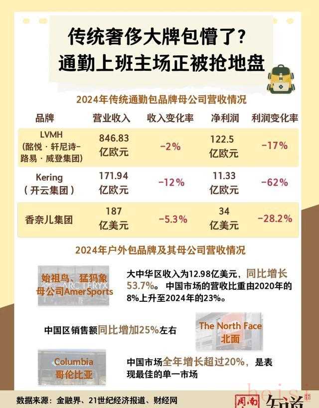 市场研究公司Euromonitor抽样北上深200栋甲级写字楼,2024Q1户外包出现率31%,比去年提高12个百分点;奢侈品箱包从38%跌到26%。数据背后,是“悦己指数”打败“炫耀指数”——谁也不想加班到深夜,还要替一只两万块的包做保养SPA。