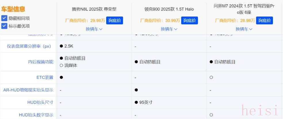 大六座、智能座舱与智驾、插混这些卖点也是今年大六座SUV市场的高频词汇,领克900和问界M8等车型都是这样的套路,相比之下,腾势N8L作为后来者,其纯电续航要略长,在价格上诚意给的也更足,按理说也是具备了走量的条件,但消费者对比之后发现,腾势在配置搭配方面让人有些摸不着头脑。