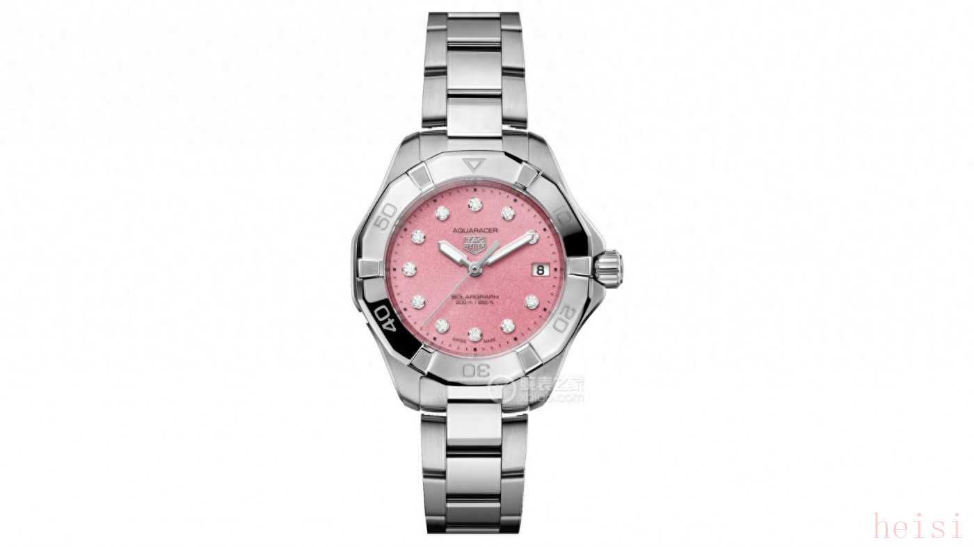 腕表点评:如果你喜欢那种精致与活力的感觉,这款泰格豪雅竞潜系列WBP1318.BA0005真的很值得入手。它是典型的“运动表中的小仙女”。34毫米的表径,粉色表盘,钻石时标,小巧精致,但搭配上十二边形表圈和棱角分明的表壳线条,却又带出一种果断的气质——这就是泰格豪雅最擅长的“柔中带刚”的设计语言。机芯采用的是TH50-01石英机芯,不用担心走时误差,也免去了频繁上链的麻烦,对女生来说日常佩戴来说非常省心。而且防水深度达200米,无论是度假、游泳还是日常通勤,它都能轻松应对。现在双十一价格21799元,相较于原价23200元,算是入手的绝佳时机。对于那些希望在手腕上展现自信与温柔并存的女生来说,这块表再合适不过了。