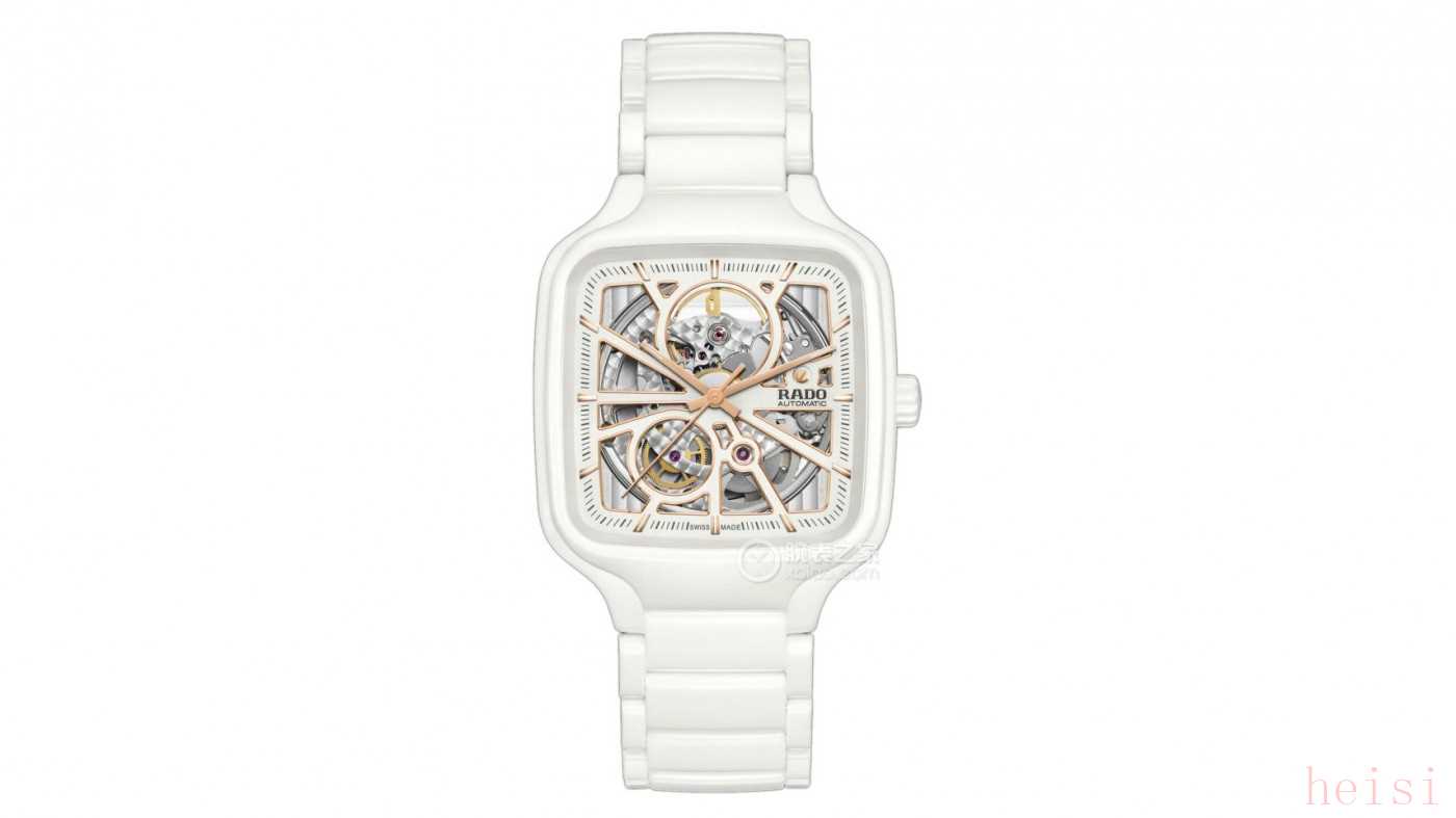 腕表点评:RADO一直是将科技与美学结合得非常出色的品牌,这款表用上了品牌标志性的高科技陶瓷材质,光滑细腻、不易刮花,还贴合肌肤,非常适合日常佩戴。它的外观真的很有辨识度——38×44.2毫米的方形表壳,有种摩登建筑的几何感。白色陶瓷表身搭配金色指针刻度,很有高级感。镂空表盘可以看到内部的机芯打磨和运作,尤其是金色可摆动的锚形标志,每次看表的时候都会不由自主地多看两眼。内部搭载的是ETA C07.631自动机芯,拥有80小时的超长动力储备,这一点在同价位的女表中相当出色。防水50米,日常使用完全足够。整体重量只有51克,佩戴起来非常轻盈,不会有负担感。白色陶瓷表带和钛金属折叠扣也提升了舒适度,非常适合喜欢简约又有个性的女生。现在双十一19049元就能拿下,比原价21000元划算不少,用这价格入手一块陶瓷镂空钻表,性价比可以说非常高了。