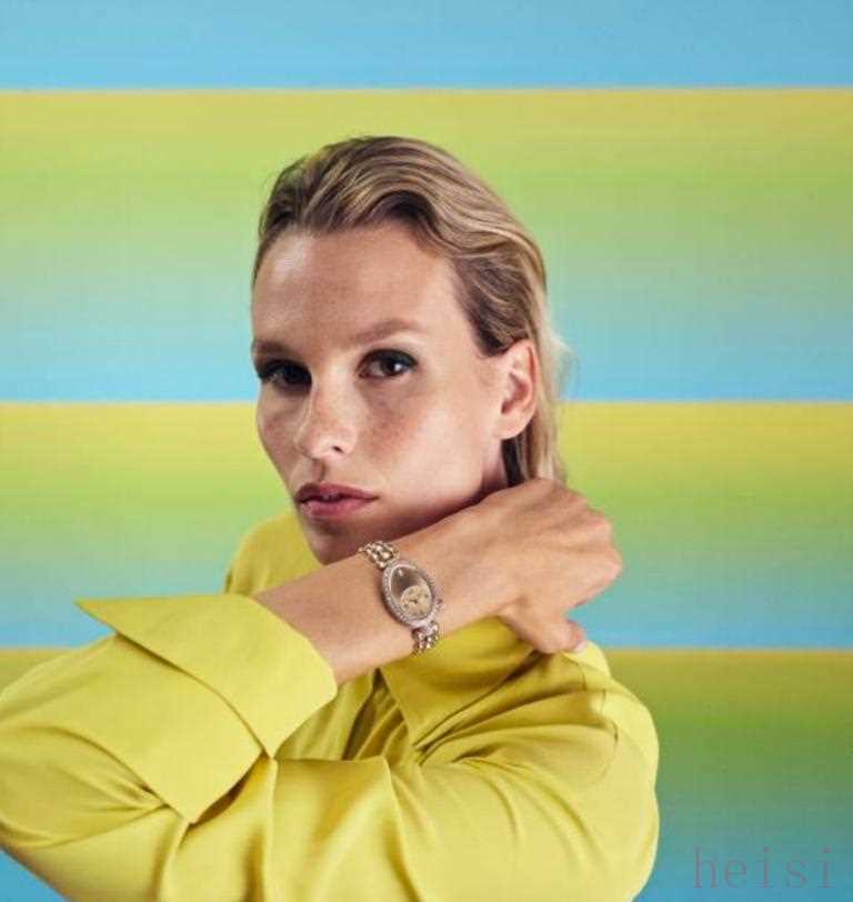 两款新品腕表配备该表链,分别是白色珍珠母贝表盘款式和密镶钻石表盘款式(镶嵌1,387颗钻石及1颗蓝宝石,总重5.2克拉)。蓝色砂金石玻璃表款则配以缎面润饰的蓝色鳄鱼皮表带,而白色珍珠母贝表款亦提供同款表带可供选择。