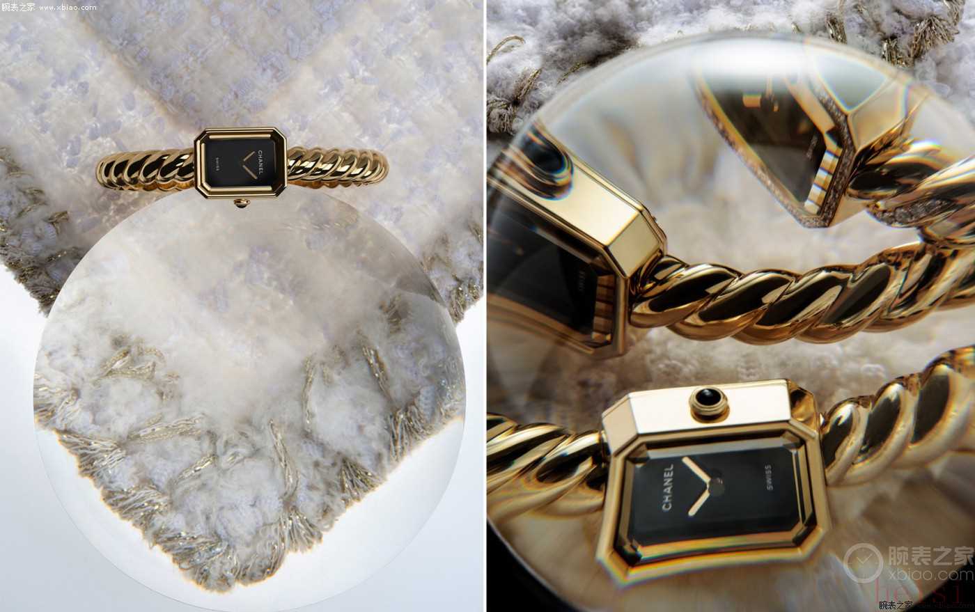 可以说,Première腕表改变了女性佩戴时间的方式,近40年后,Première Galon腕表以全新的现代风格传承了这一精神。其表镯呈现编结造型——Le Galon(法语意为“编织”),这是嘉柏丽尔·香奈儿(Gabrielle CHANEL)最具辨识度的高级定制标志之一。在她设计的套装中,编结滚边勾勒着服装的边缘,装饰着口袋与袖口,使廓形更具结构感。打造编结元素的材料与工艺丰富多变(针织、编织、扭绞),可与套装颜色相同,也可与之形成对比,营造极具视觉感的效果。可以说,编结滚边不仅是装饰,更是品牌工艺精神的缩影。