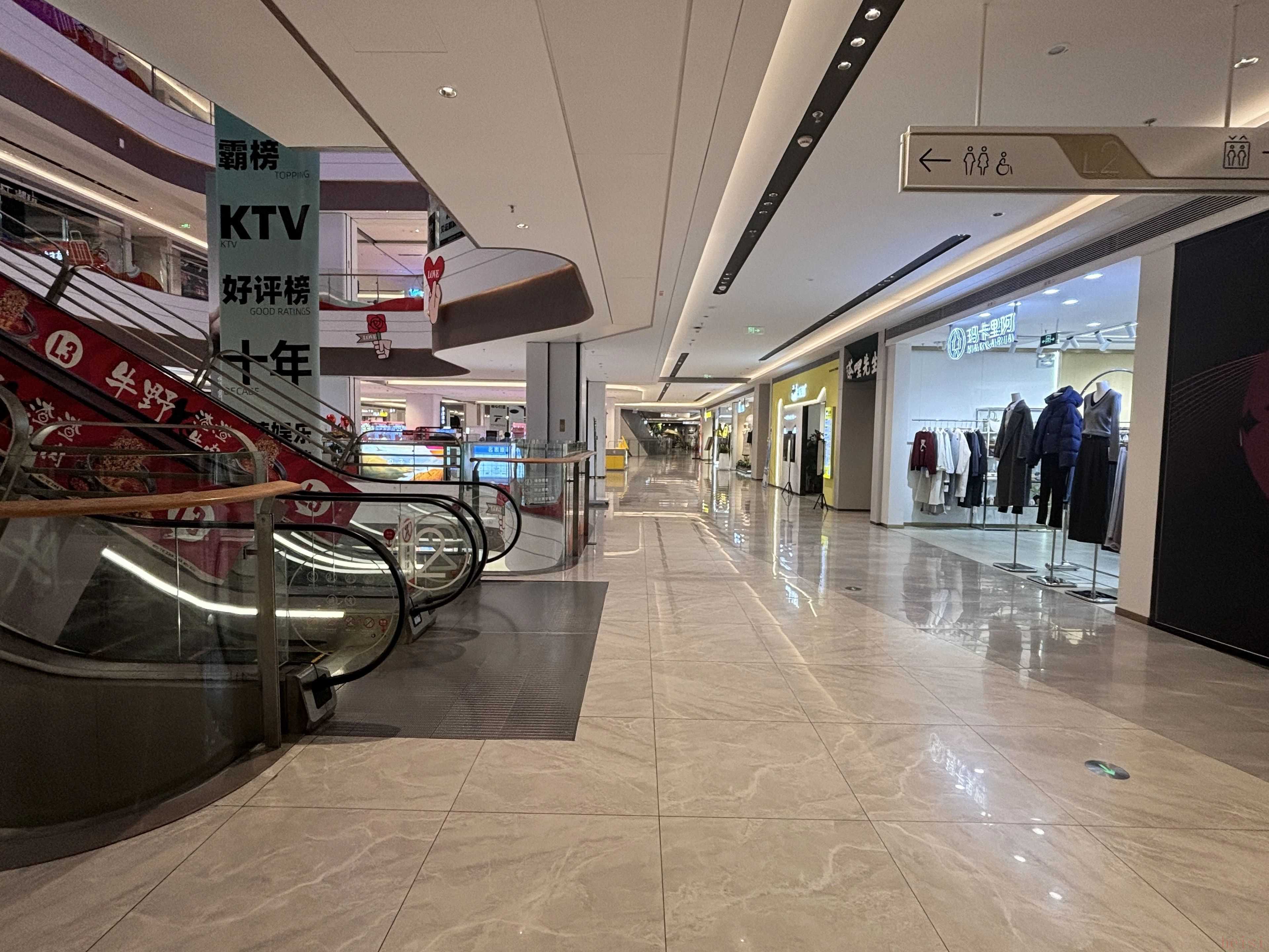 购物中心一楼、二楼的商铺基本上都在正常营业,从三楼开始,一些餐饮、特卖、潮玩店等商铺已经“人去楼空”,剩下的多是一些耳熟能详的餐饮品牌。
