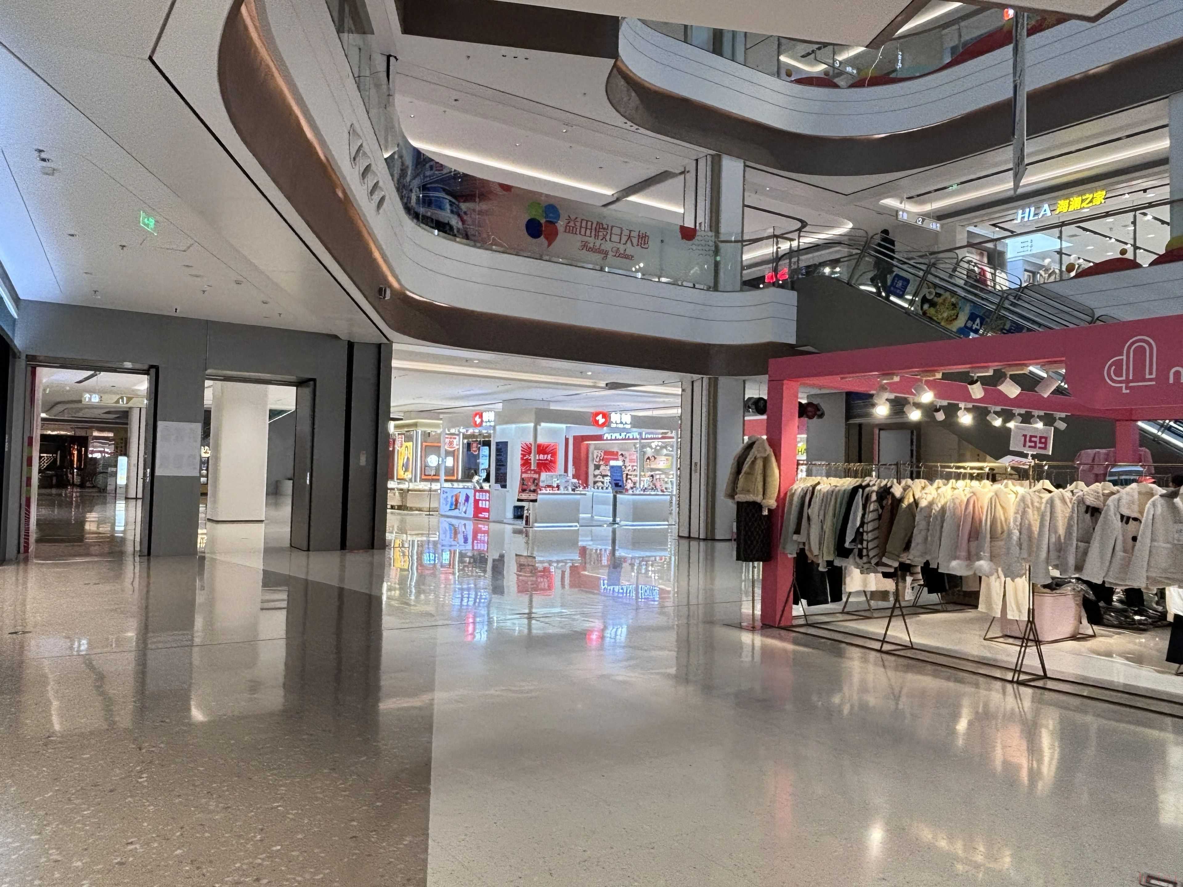 11月7日,记者来到了益田假日天地购物中心,由于是在工作日的下午,商场顾客稀少,略显冷清。