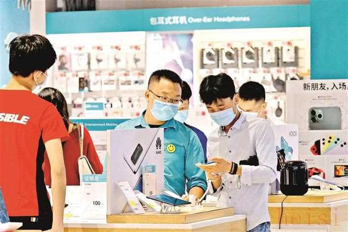 在同泰时代广场电器店选购的市民正在征询导购的建议。