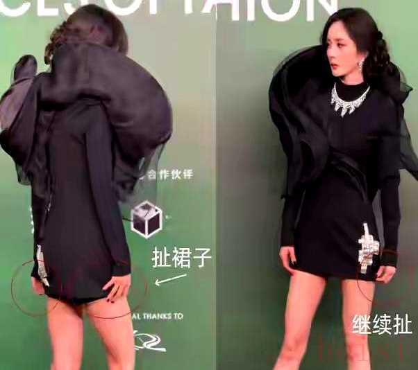 杨幂先穿黑色薄纱短裙,又换金色高定,远看像颗娃娃菜,精修图再亮也救不回现场灯光的“翻车”。
