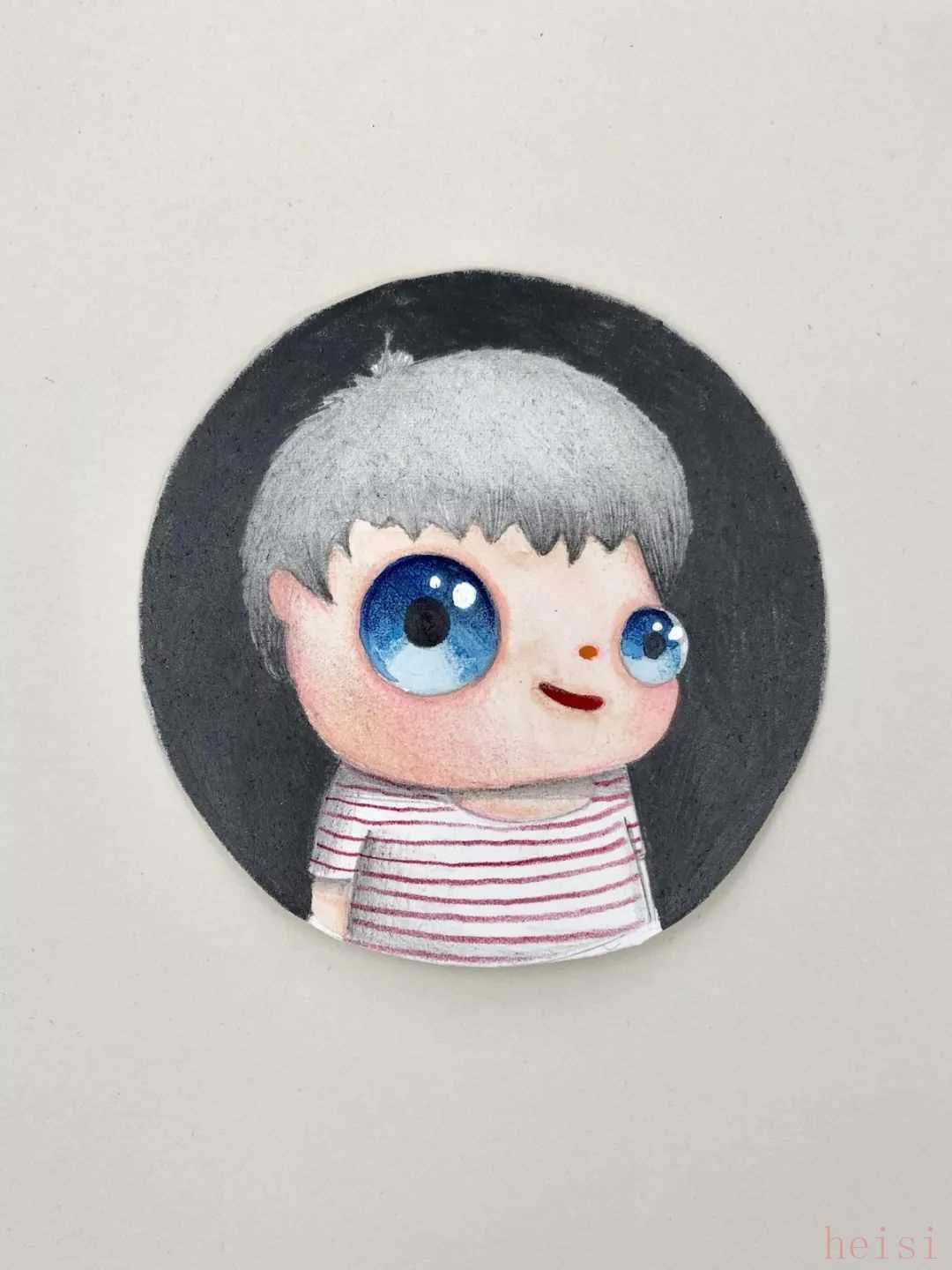 Javier Calleja《Line Boy》,纸上彩绘,10×10cm,2018年