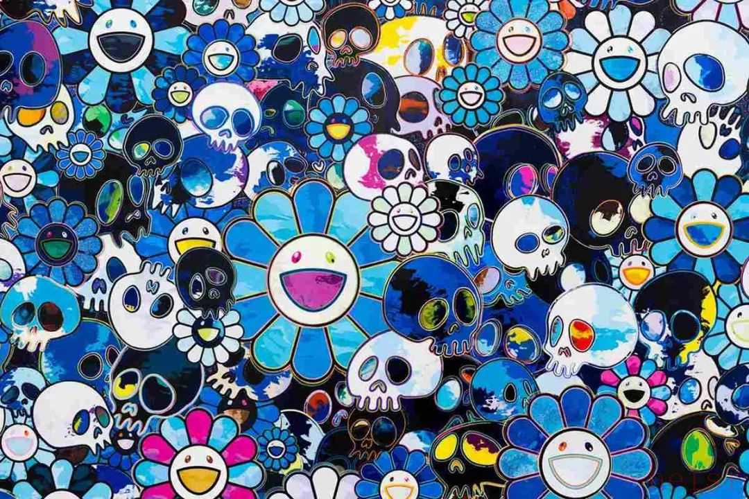 村上隆《Skulls and Flowers》(部分),纸上胶板印刷,70.8×51.1cm,2016年 © Takashi Murakami