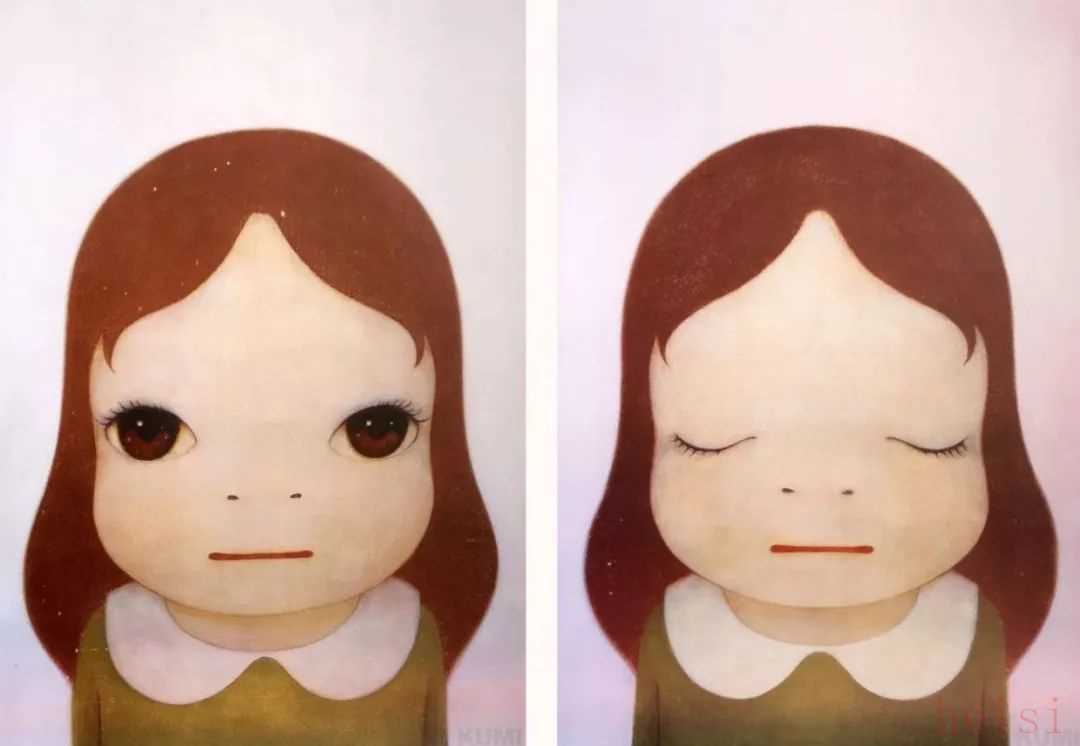 奈良美智《Cosmic Girl,Eyes Open&Eyes Closed》,胶版印刷,各50.8×71.12cm,2008年