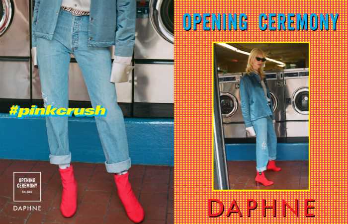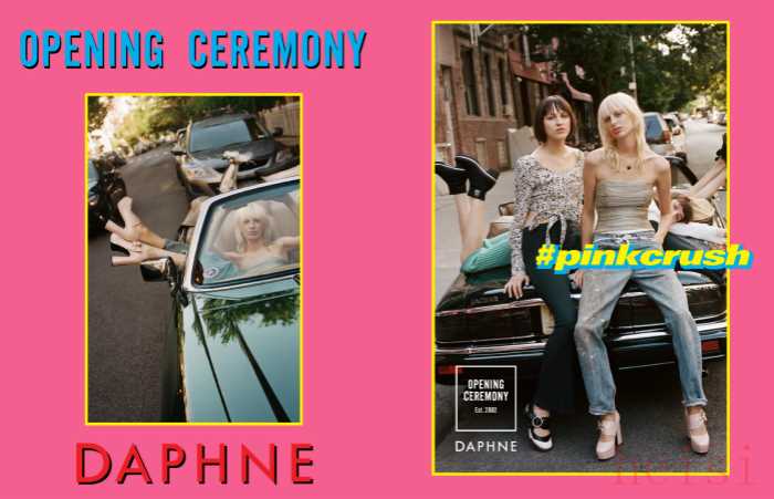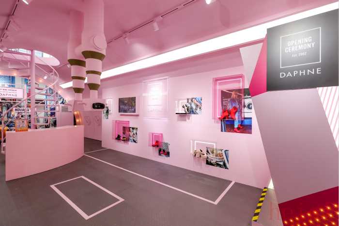 而这次人满为患的活动,就是达芙妮和Opening Ceremony最新合作系列的发布会,前者的主题色——粉色变成了这次合作的主题颜色,其实为了更贴近千禧一代的审美,现场展现的粉色已经被调整了颜色比例,但普通消费者很难察觉。