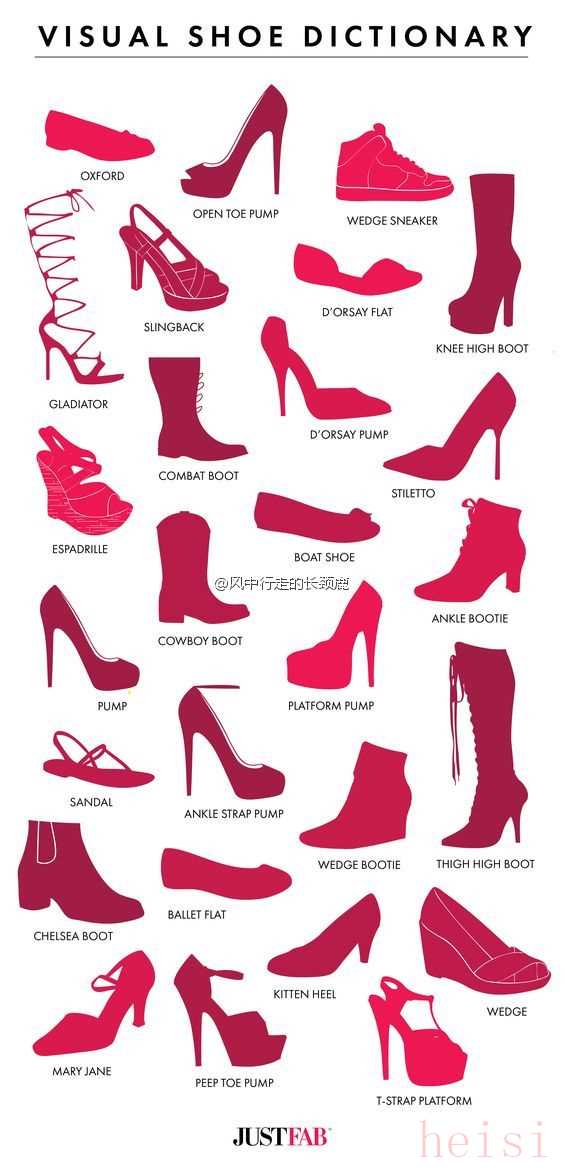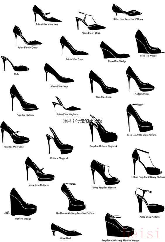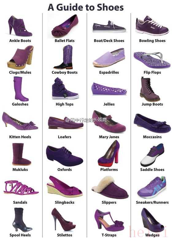 以下是一份比较全面的各类鞋子英文名称清单,涵盖了女性鞋履的主要种类,可以视为一本女鞋词典。