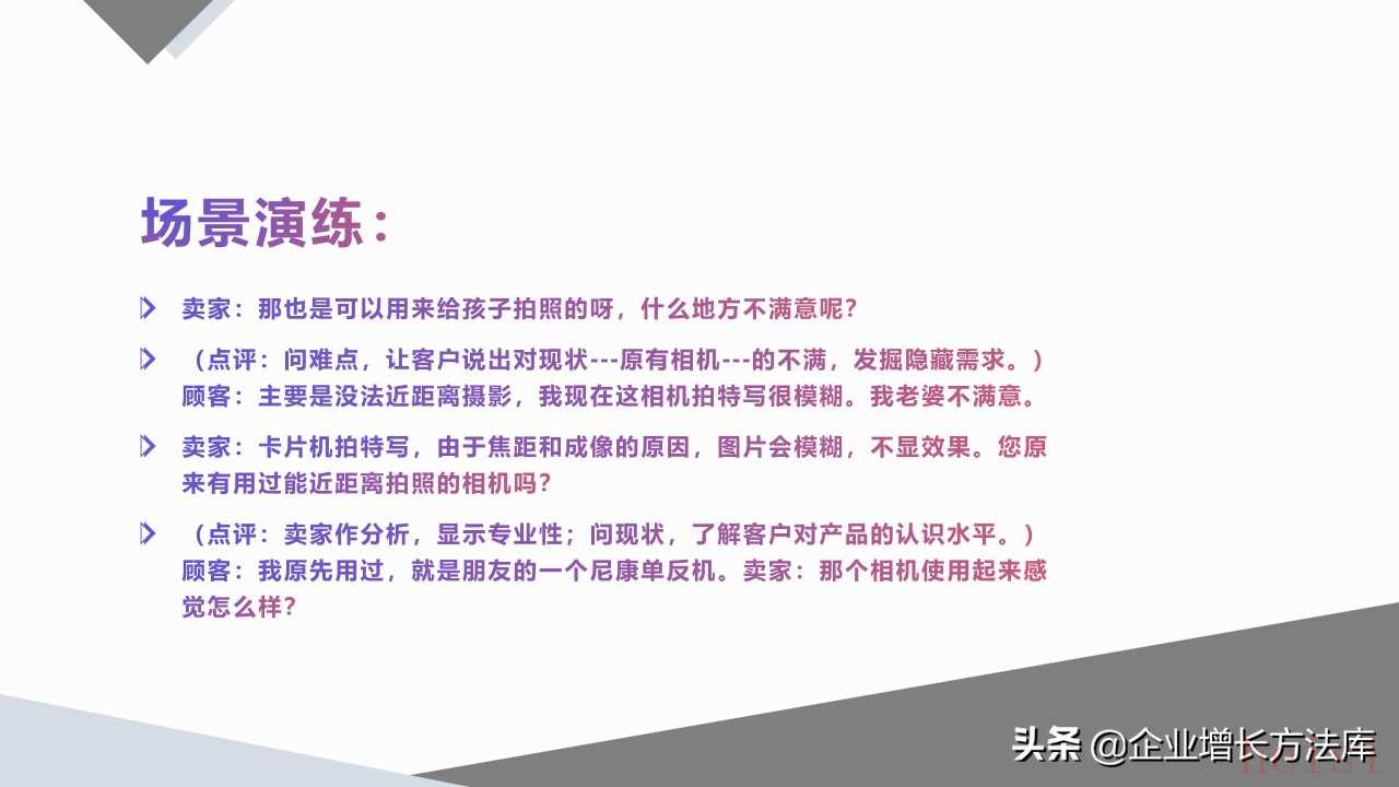 - "话术示例":“您目前在XX方面遇到的最大挑战是什么?”