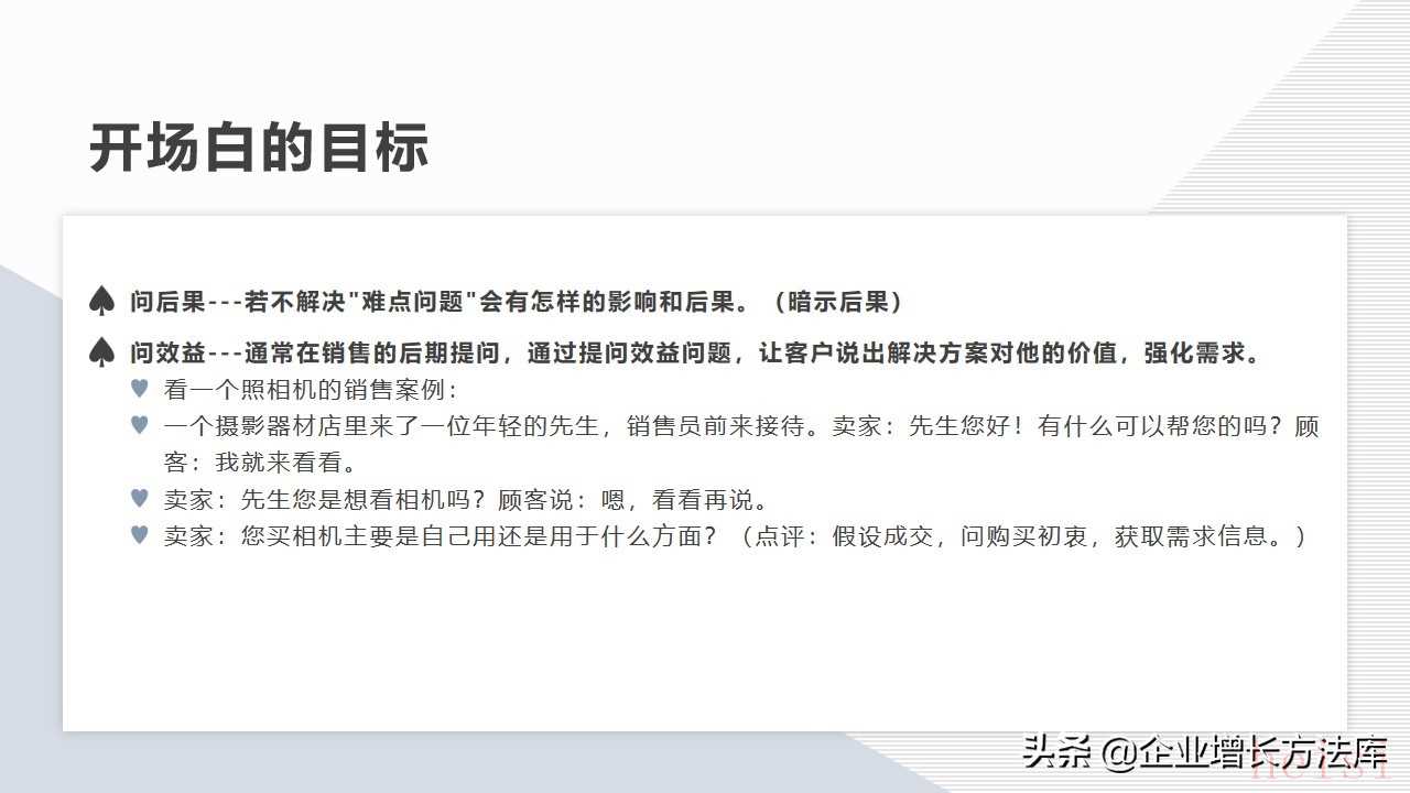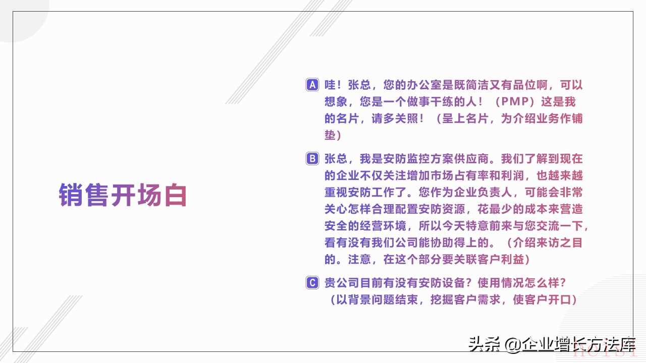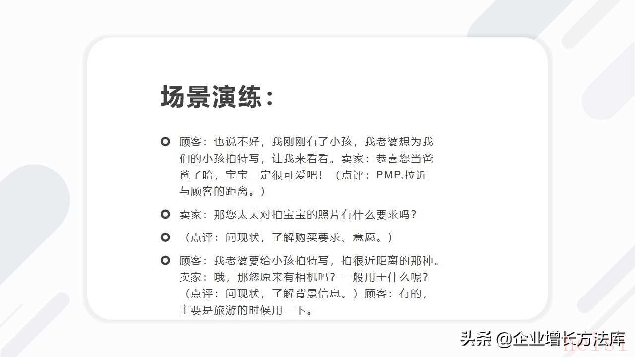 - "话术示例":“我之前有一个客户,通过使用我们的产品,实现了XX目标。”