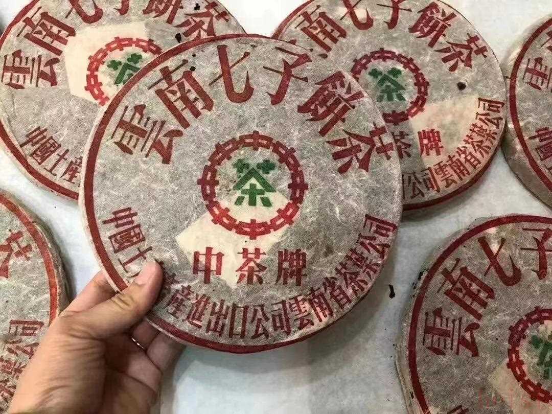 ▲2019仕宏拍卖 Lot 160五十年代 大字红印青饼数量:一筒七片总重量:约2323g年份:1950年代工序:生茶仓储:干仓成交价: 6,405,000港币·七子饼茶—— 60年代末到90年代云南国营茶厂所出茶品,一筒七饼,外包纸印有“云南七子饼茶”字样。如薄纸8582、雪印青饼、小黄印,88青饼等,陈化韵味优秀,备受市场追捧。