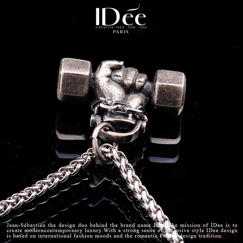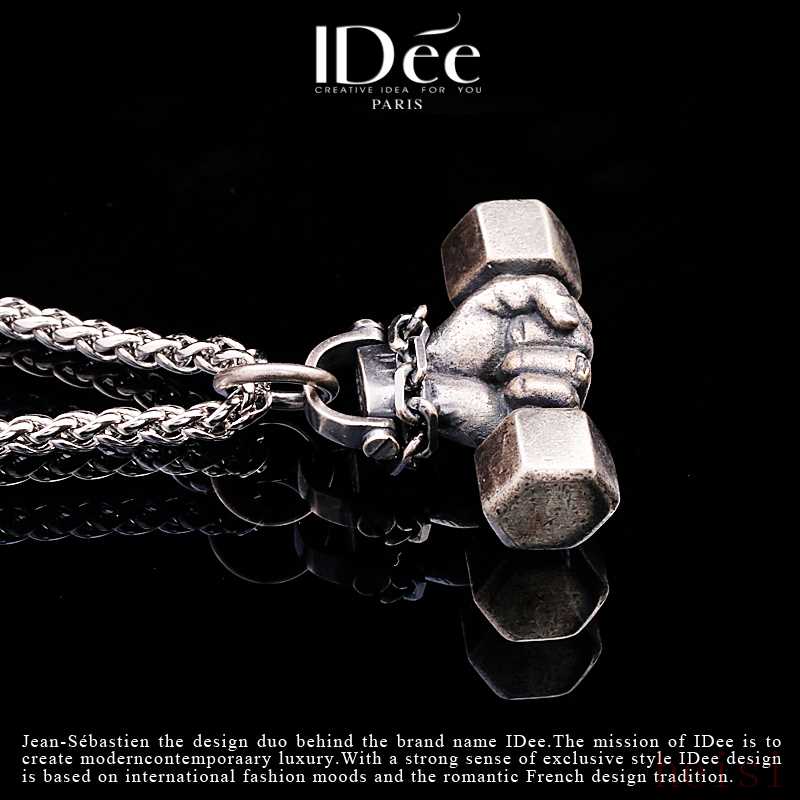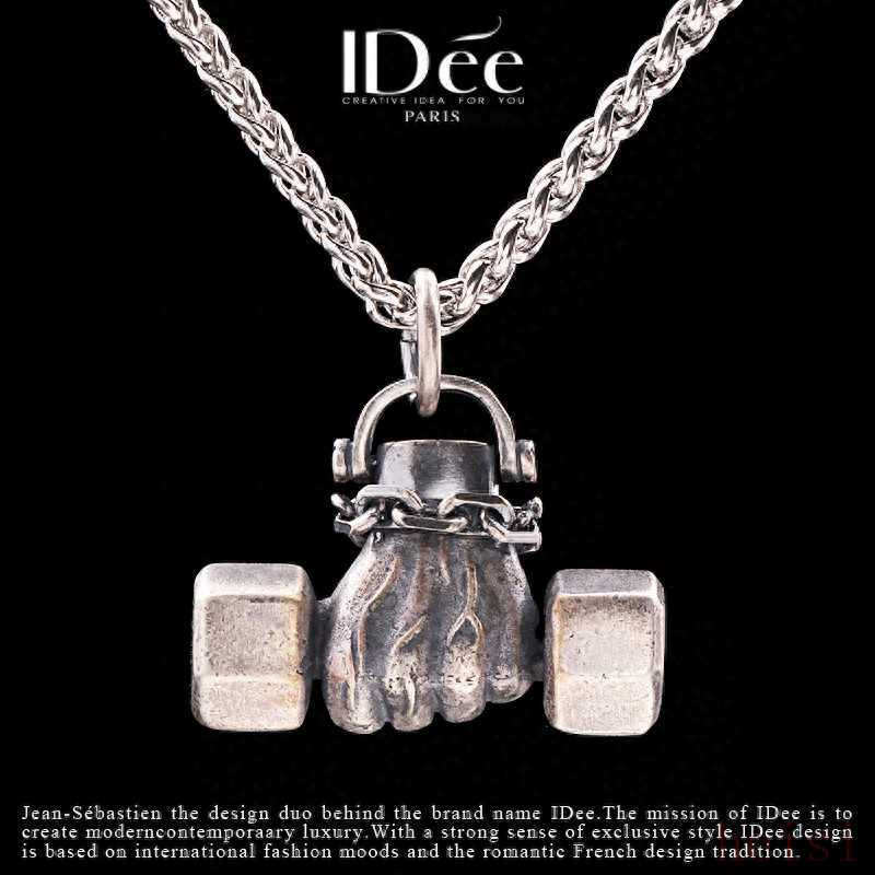 这个描述简洁有力,通过结合具体材质(泰银)、独特形态(哑铃)、核心价值(力量与品味)以及品牌定位(法国IDee潮