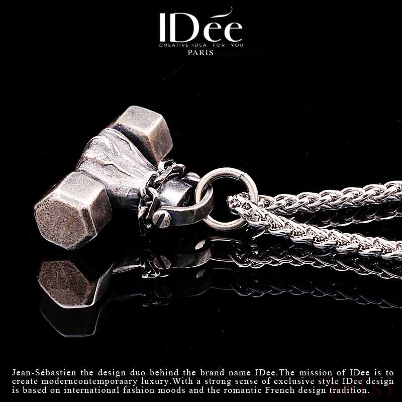 4. "品牌与定位:" "法国IDee时尚潮男项链" - "法国" 带来了浪漫、优雅、设计的联想;"IDee" (意为“想法”、“主意”) 可能暗示着创新、独特的设计理念;"时尚潮男" 明确了目标用户群体,即追求时尚潮流的年轻男性。