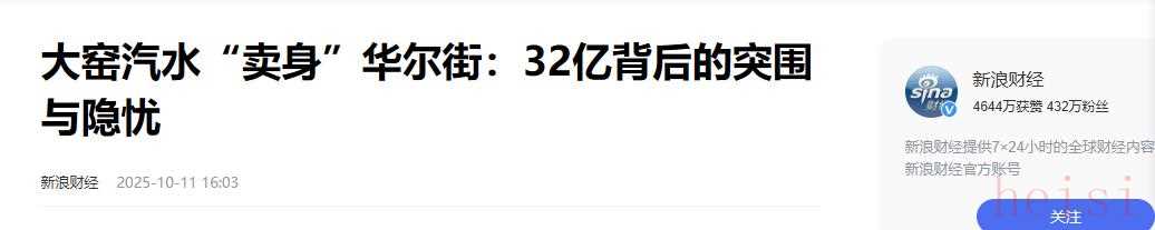 新浪财经《大窑汽水“卖身”华尔街:32亿背后的突围与隐忧》