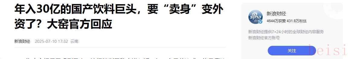 新浪财经《年入30亿的国产饮料巨头,要“卖身”变外资了?大窑官方回应》