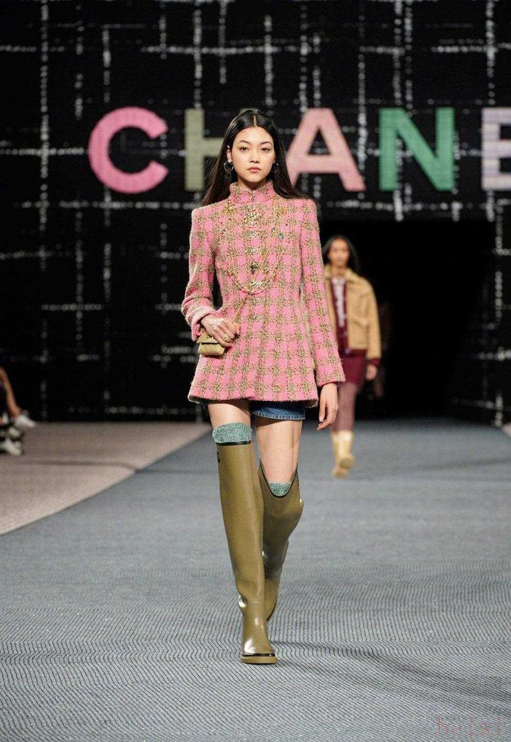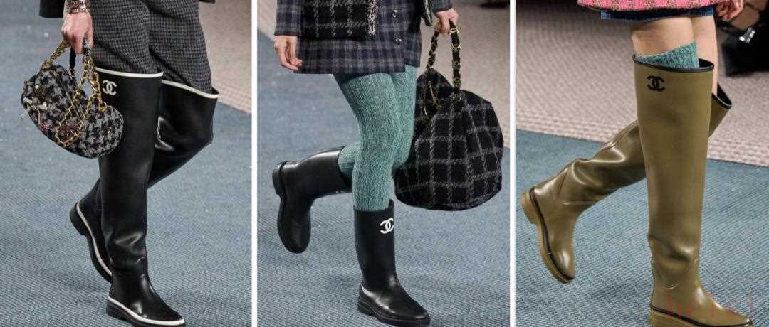 在今年以“斜纹软呢”为主题的CHANEL秋冬秀场上,极具人气的雨靴以超高的时髦曝光度,又一次成为了T台焦点。