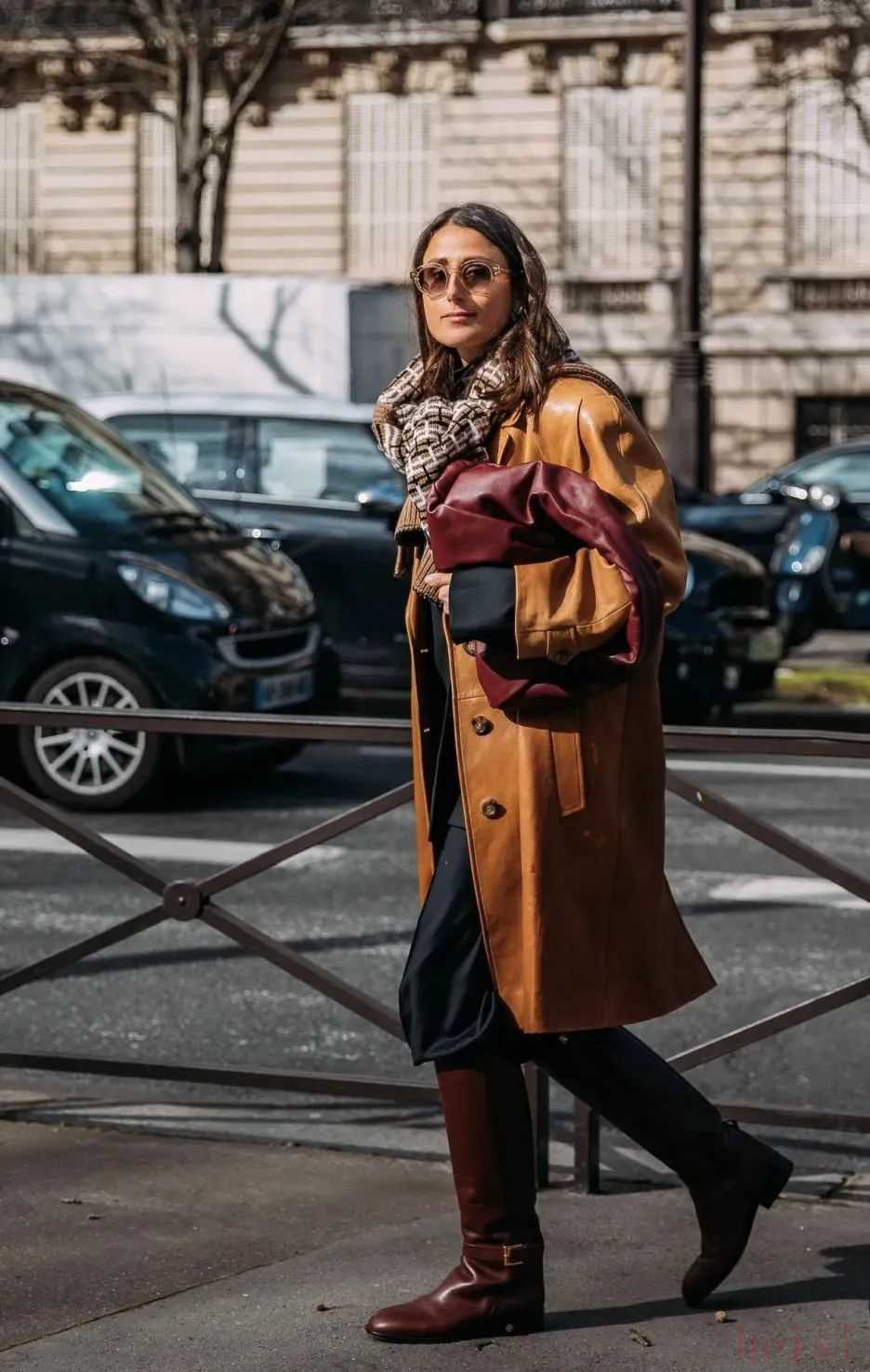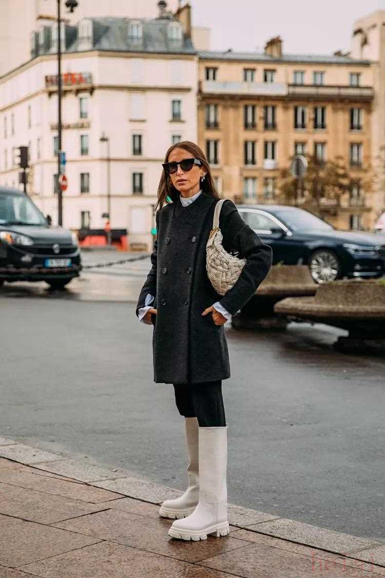 在湿冷的冬季,雨靴也是搭配风衣和皮衣的绝佳选择,既能防水保暖,还能用来凹造型。在大衣和皮衣的搭配下,雨靴穿搭可以完美修饰腿型,同时还能增加穿搭的层次感,绝对的实用又好看。