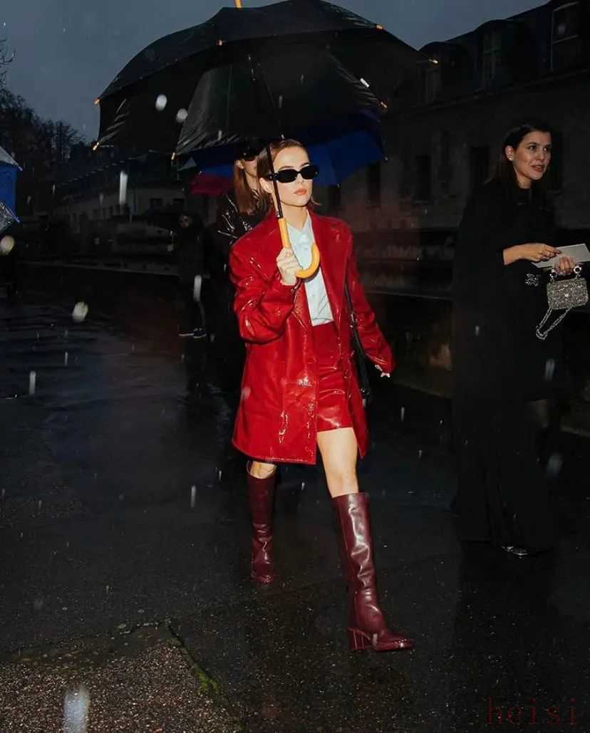 而其中最经典的款式,当属这双红色惠灵顿高筒靴,复古大气,即使不是下雨天,也拥有着超高的时髦曝光度。