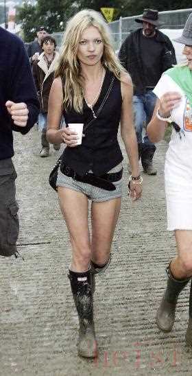 另一位在雨靴的时尚发展之路上功不可没的,就是超模Kate Moss 。在Hunter濒临破产时,自带名人效应的Kate Moss 不仅出街穿,参加音乐节也穿,不同搭配下的Hunter雨靴时髦度拉满。在这之后,雨靴便受到更多时尚icon的宠爱,而人们也不再仅仅只将橡胶雨靴视为功能性用具,对其时尚方面的发展也有了更多的期待。