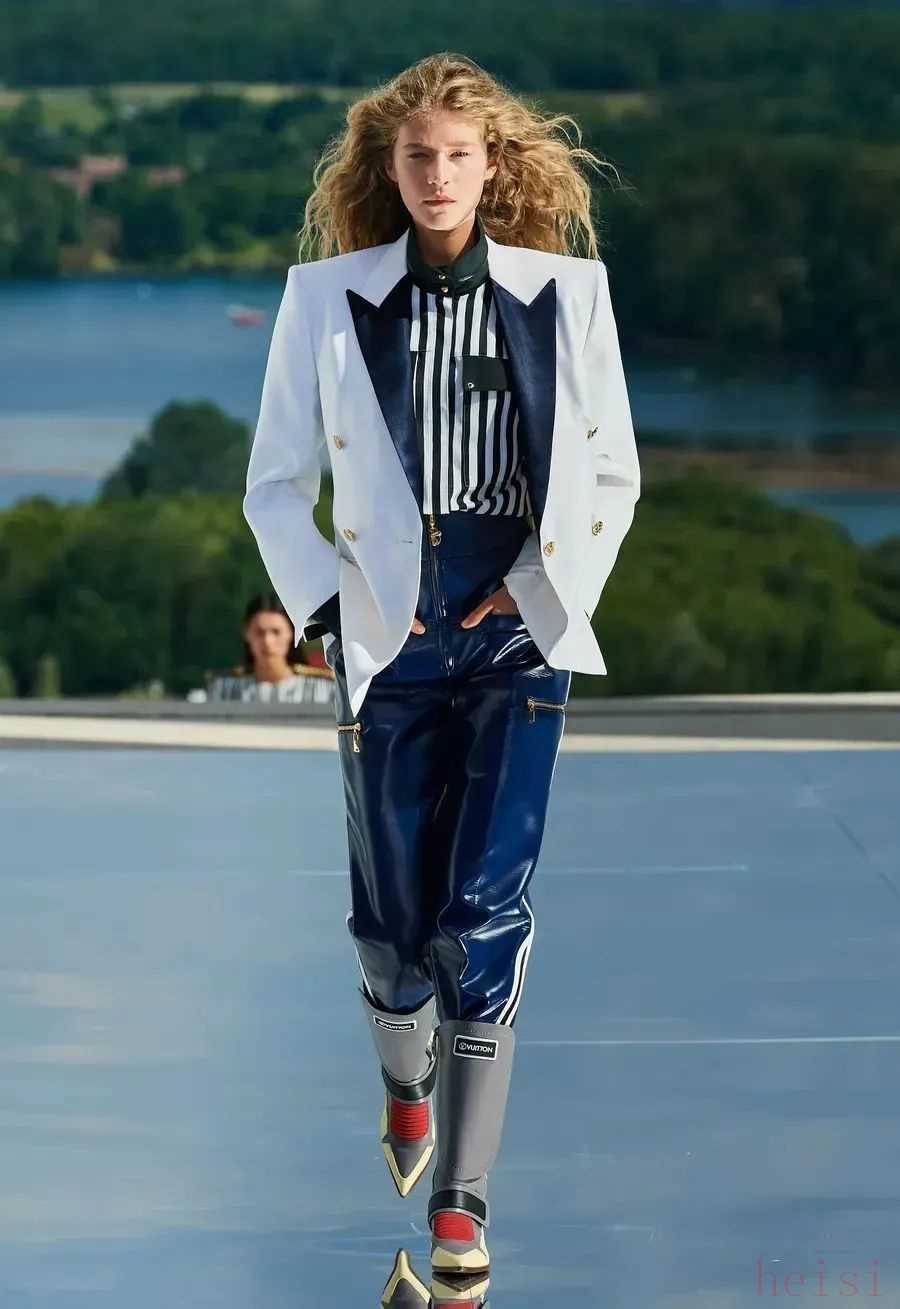在Louis Vuitton Resort 2022 的秀场上,雨靴成为了出场频率最高的时尚单品之一,无论是摩登裙装还是干练的硬挺西装,搭配一款雨靴立马气场全开。帅气个性的中高筒靴,不仅日常出街百搭帅气,在雨天时,锯齿的厚底跟设计还赋予其很好的防滑性。