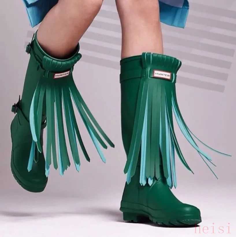 如今, Hunter Boots已经是一个有着百年历史的专业雨靴品牌,从款式、配色到材质都遵循多样化原则,轻便实用又时髦在线。无论是高筒平头款的传统惠灵顿靴,还是热门的切尔西靴都十分受欢迎,搭配各种糖果配色更是让它颇受时尚人士的喜爱。