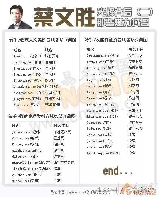 蔡文胜拥有的部分域名列表 图片来源:易名中国(2011年)