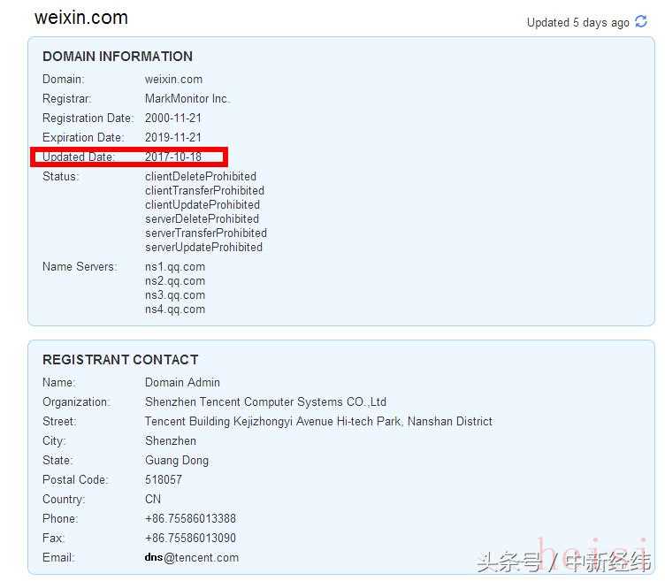 中新经纬客户端11月1日电(孙瑶) 面世六年,腾讯终于拿下了weixin.com的域名。