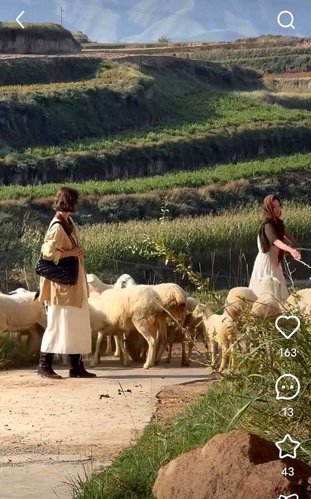 李娜在黄河滩口拍女包广告,村里人围观,黄泥巴粘鞋子照样出大片