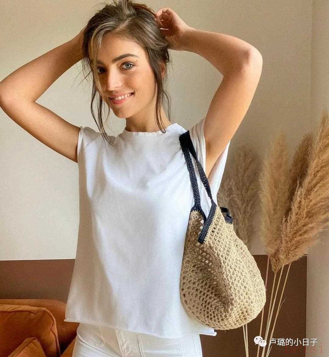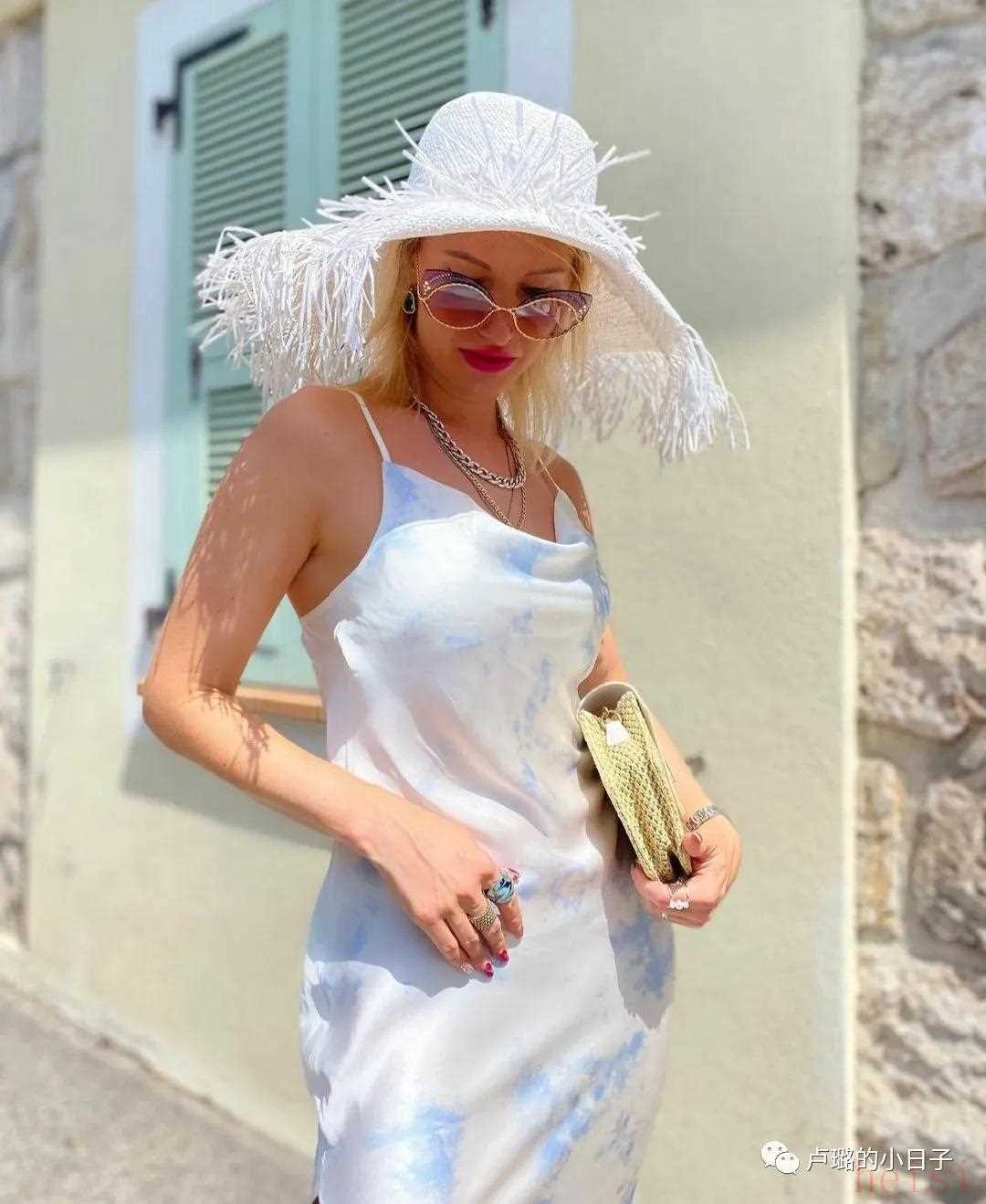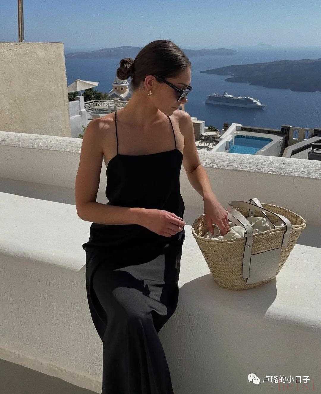 以这一套穿搭为例,白色丝绸吊带搭配黑色手拿包,其实已经很优雅了。