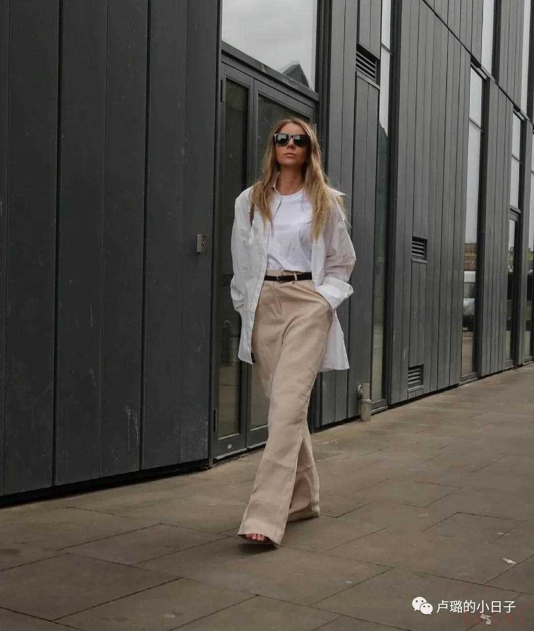 高腰的作用不必多说,可以从视觉上提高腰线;宽松的裤子可以帮助修饰腿型,对于一些腿型不好看的朋友而言,是很好的选择。