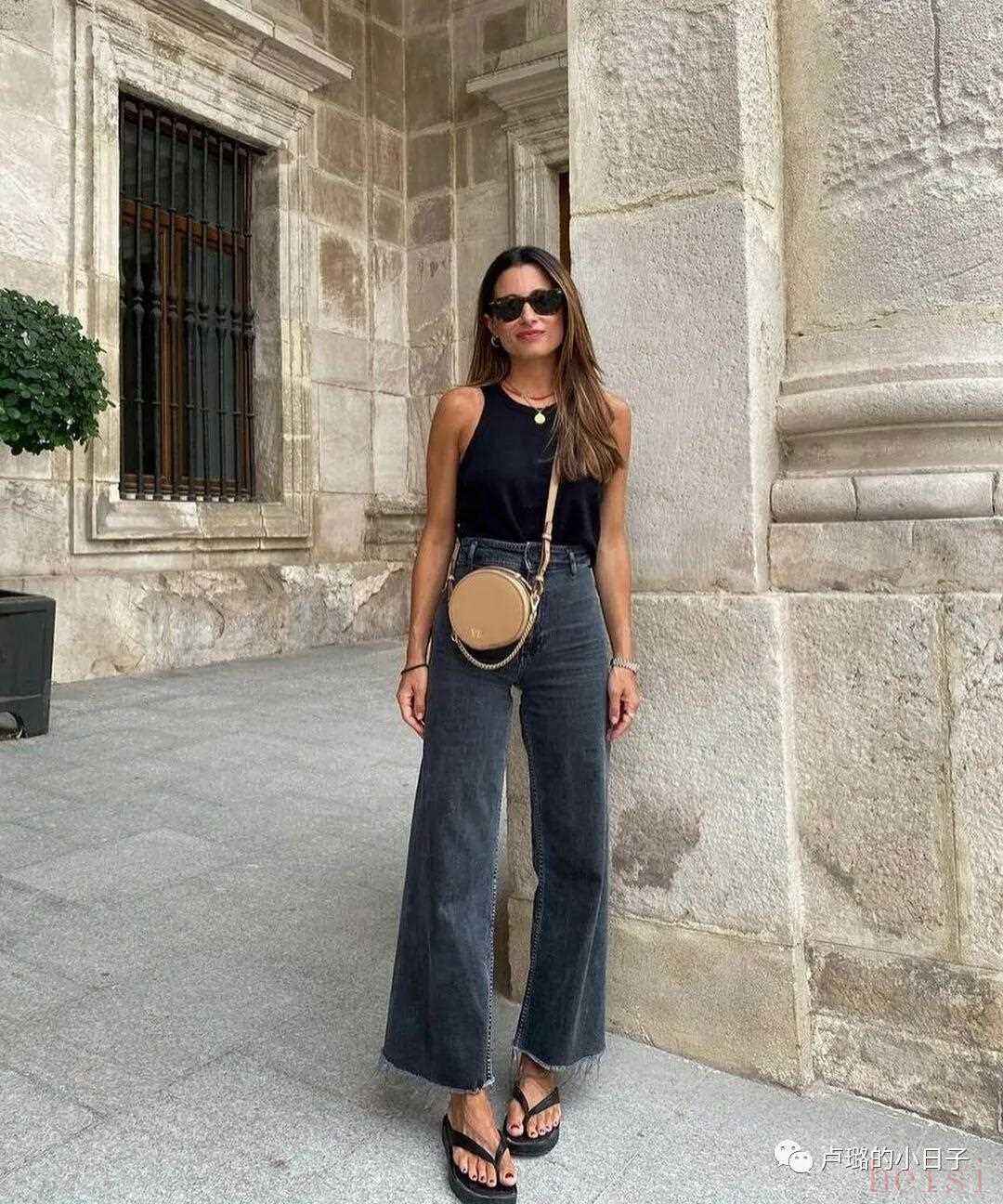首先说说几乎每个人都能hold住的高腰阔腿牛仔裤。
