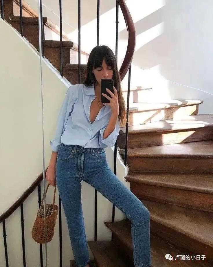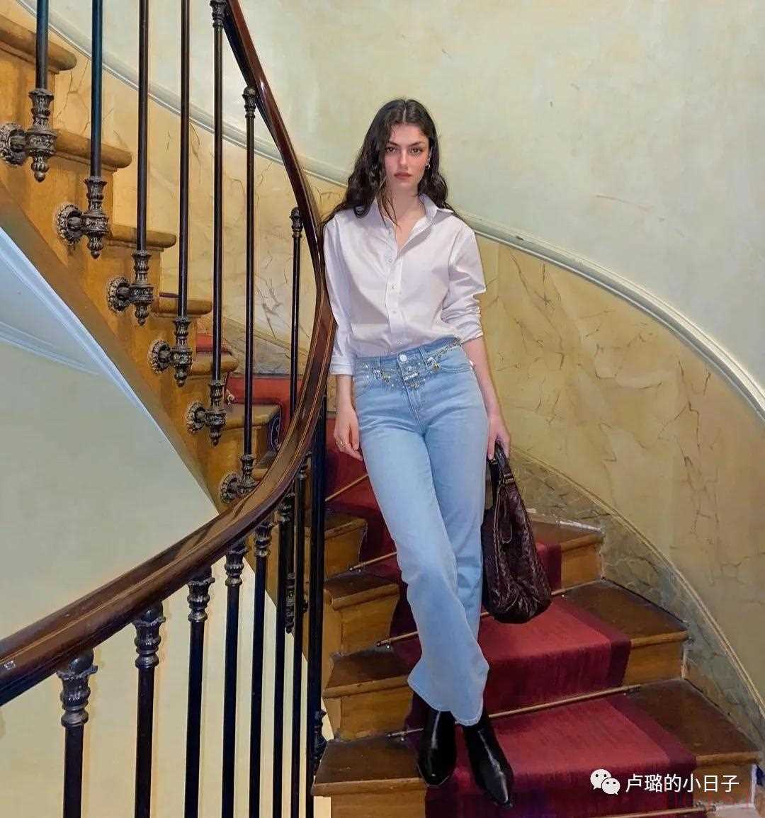 白衬衣和牛仔裤,搭配在一起,简约利落几个字几乎就浮现在眼前了。
