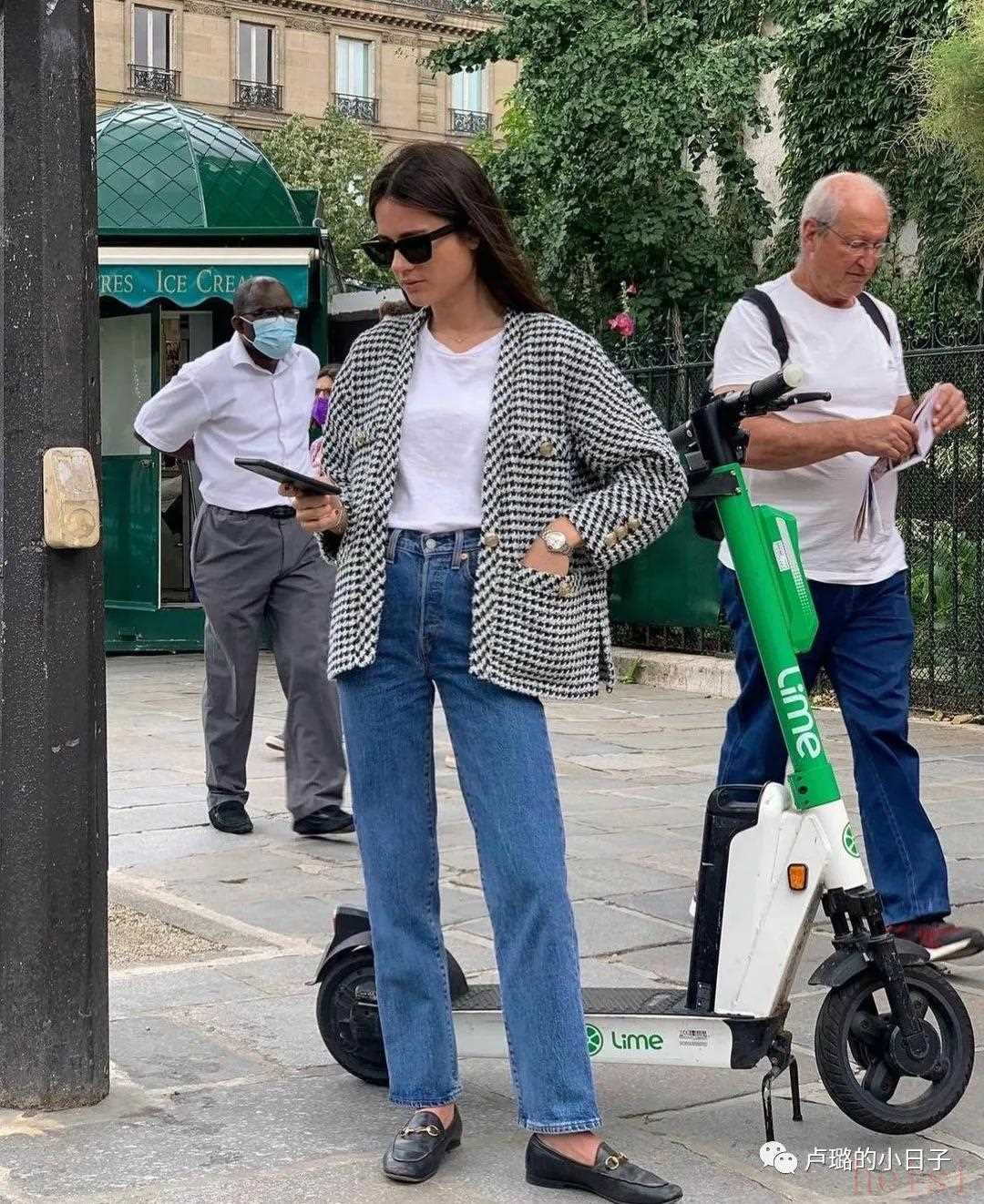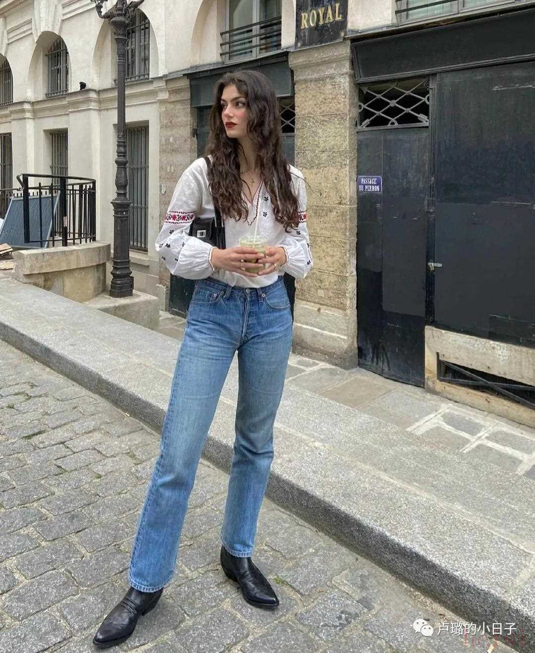 除了阔腿牛仔裤,紧身牛仔裤也是法国女人爱穿的款式之一。