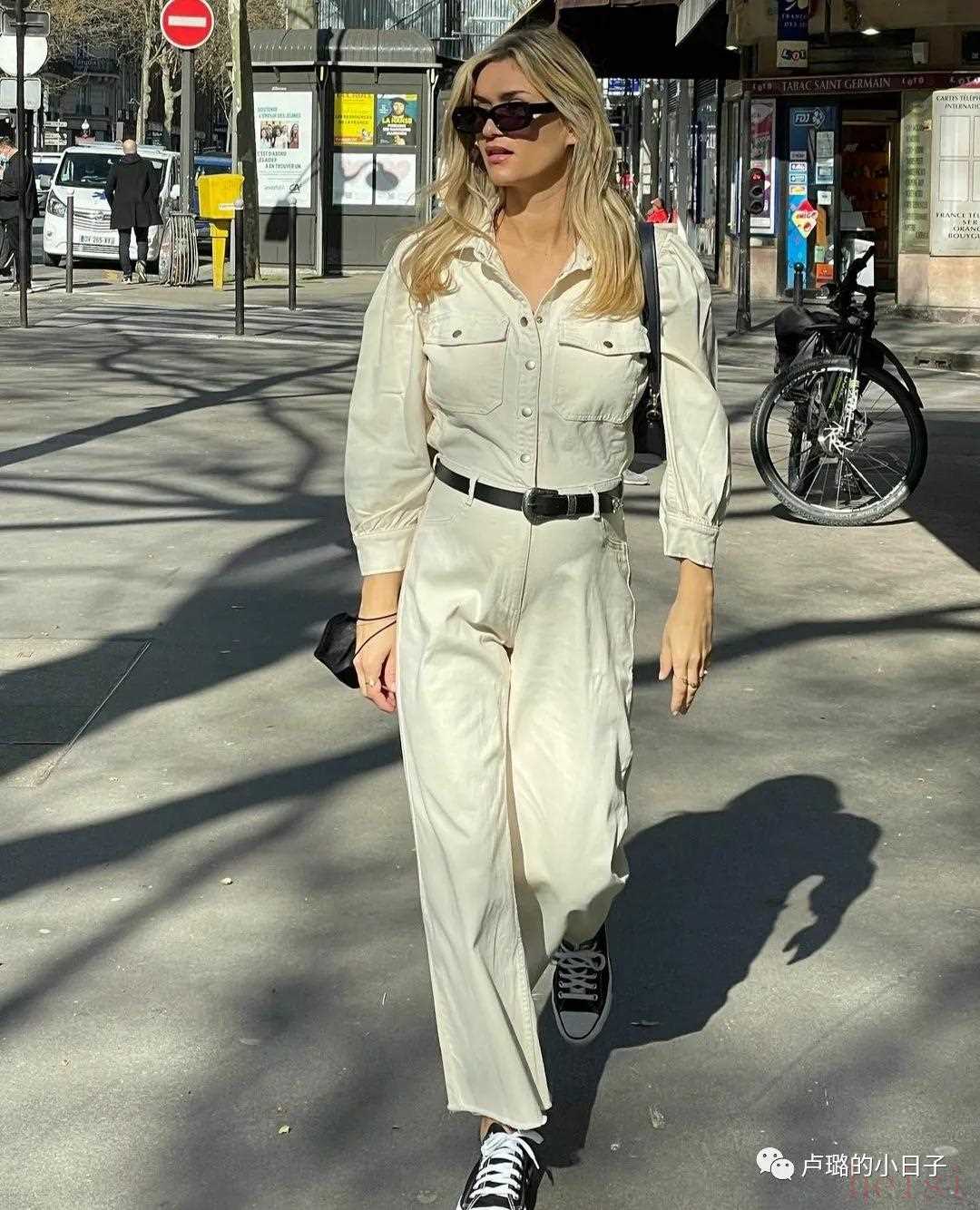 虽然这里的图片是连体裤,但穿搭逻辑是一样的。