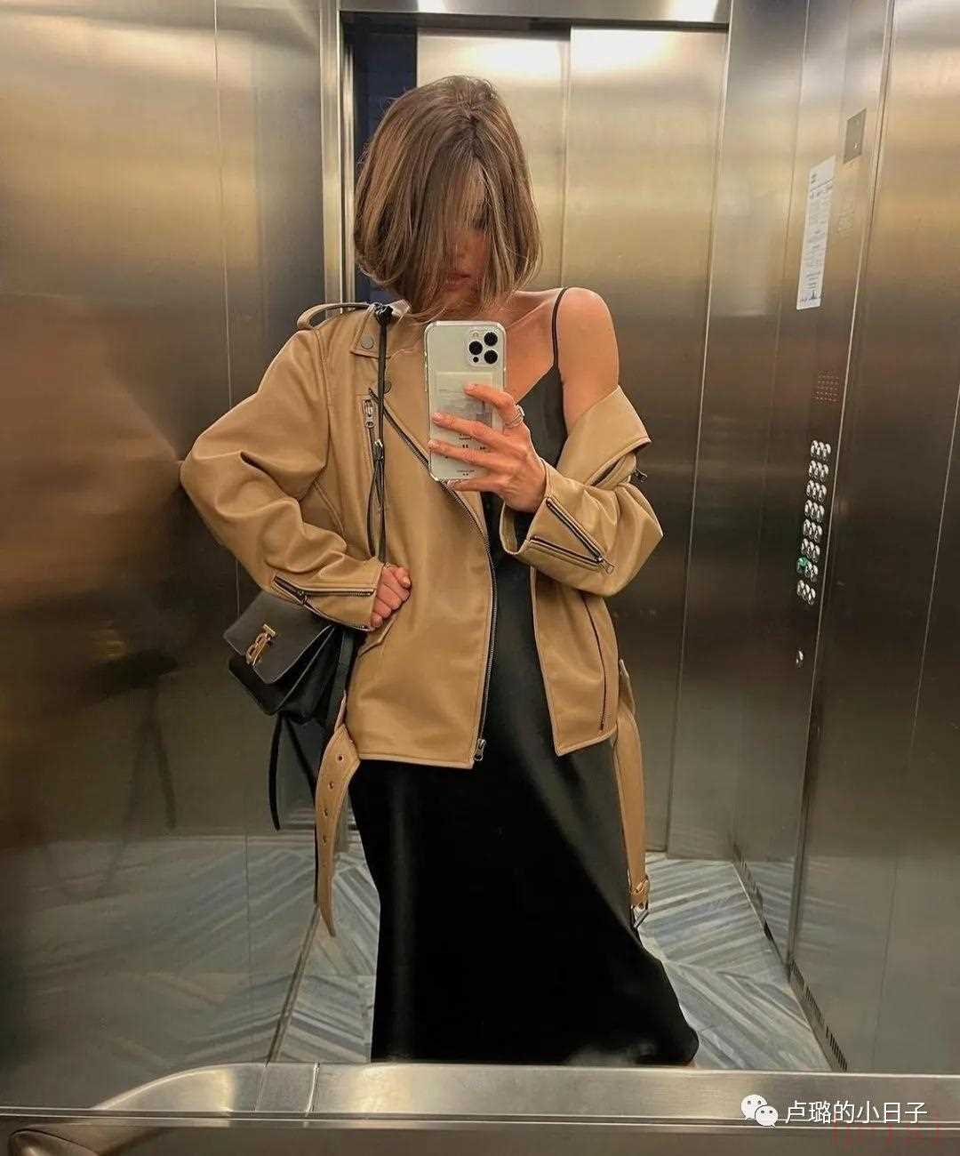 再看这一套黑色的穿搭,如果没有金色的项链和包包,是不是会觉得有些沉闷,添加了一些亮色,顿时把整体的质感拉高了。
