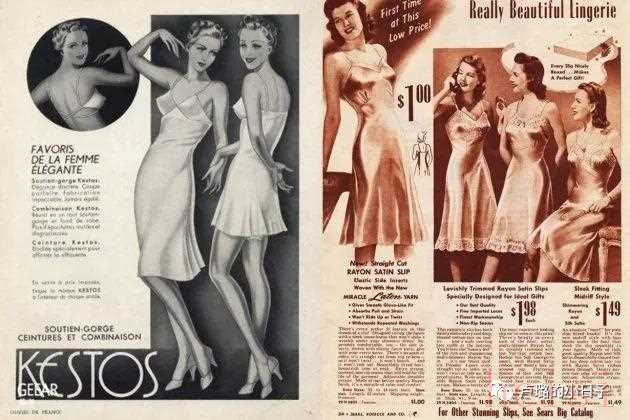 1940 年代的内衣衬裙广告事实上,我们现在常见的吊带裙诞生于上世纪二十年代,人造丝的广泛应用,促生了吊带裙的出现与流行。