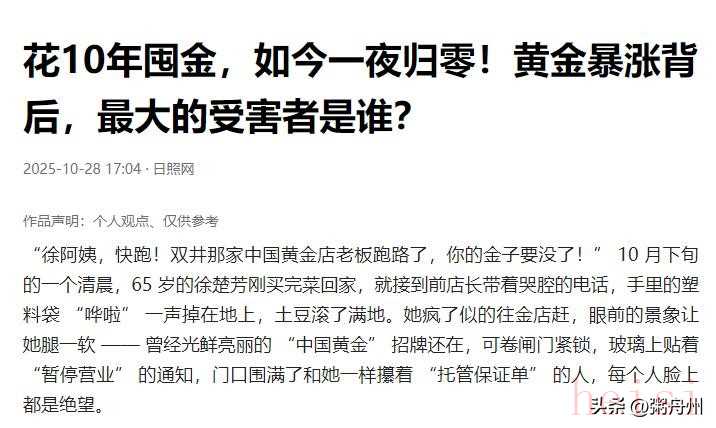 《花10年囤金,如今一夜归零!黄金暴涨背后,最大的受害者是谁?》——2025-10-28 17:04·日照网