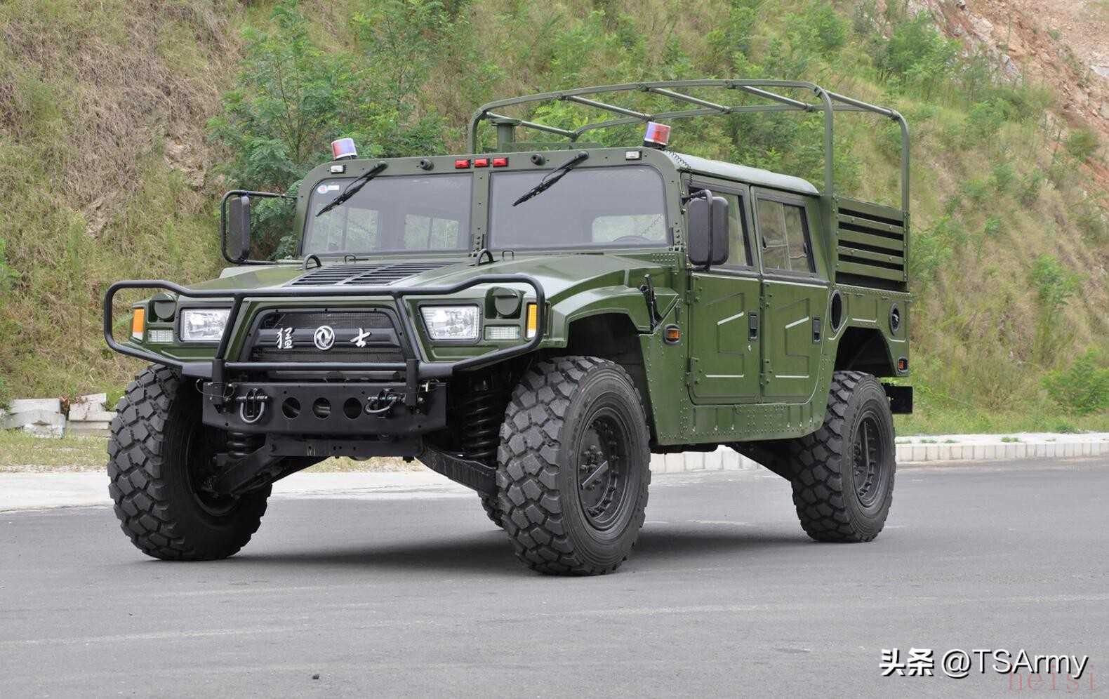 东风“猛士”模仿“悍马”设计,有着相近的外形和类似的悬挂布局,同样东风“猛士”也有多种不同型号,比如皮卡版、软车顶版、以及类似“悍马”的溜背版,东风“猛士”的机动性强,可靠性高,一般都用于作战使用,车顶可搭载无后座力炮、重机枪、榴弹发射器或反坦克导弹等,到现在该型车辆也已经衍生出第三代装甲版本。