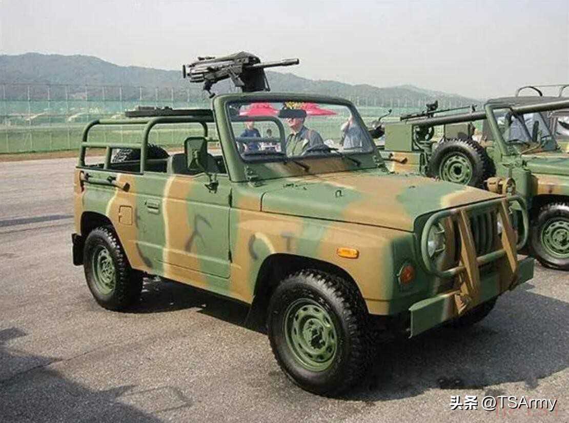 由韩国起亚以民用吉普车的基础,又参照悍马战车的特点,在上世纪90年代,就设计出了这款KM42型多用途越野车,在90年代末期开始装备部队,虽然起亚KM42体型很小,是因为主要考虑到了地形环境,还有空降作战的用途,所以该车的尺寸就比较小,KM42也采用敞篷式设计,作战版可安装无后坐力炮、重机枪、榴弹发射器等,乘用版可安装软车顶,车内可乘坐4~6名成员,到现在起亚KM42型多用途越野车,仍然作为韩国陆军的主力。