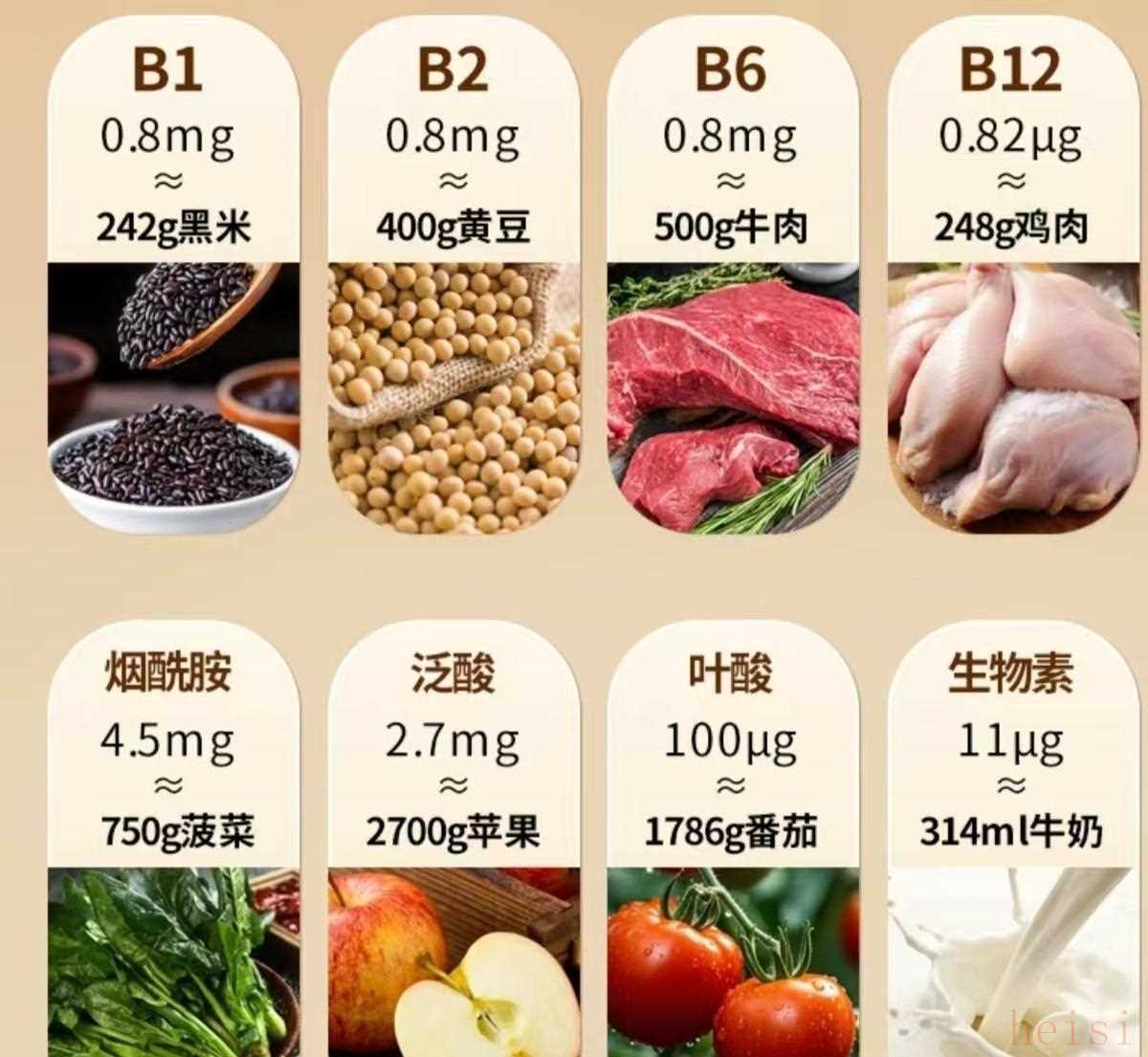 1. "成分全面性:" 优质的B族维生素通常包含所有8种B族维生素(B1, B2, B3, B5, B6, B7, B9, B12),有时还会额外添加如叶酸、生物素等。