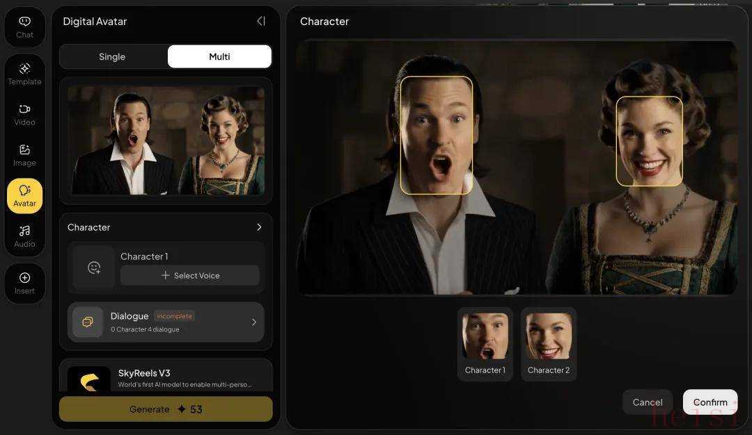 做到这一点需要更好地解决时序与语义同步、多主体空间分配与身份保持、镜头连贯性与视觉协调等层面的技术挑战,为此昆仑万维引入了区域路由机制,让用户可以自由指定画面中的若干角色说话,并将含有角色标签的多段音频按对话顺序拼接,从而实现自然流畅的多轮对话。