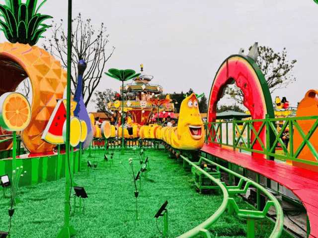 4. "时尚口号:" "go go 购" 结合了英文和拼音,显得活泼、年轻化,同时巧妙地融入了"购物"元素,暗示乐园不仅仅是娱乐,也结合了商业消费,吸引更广泛的客流。