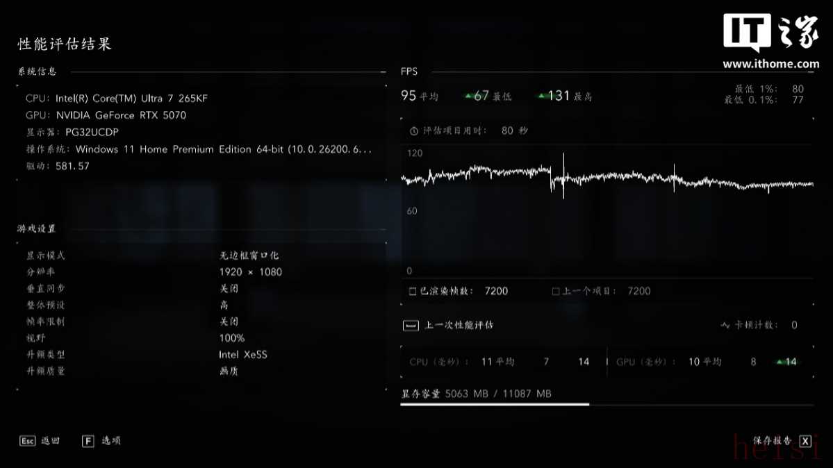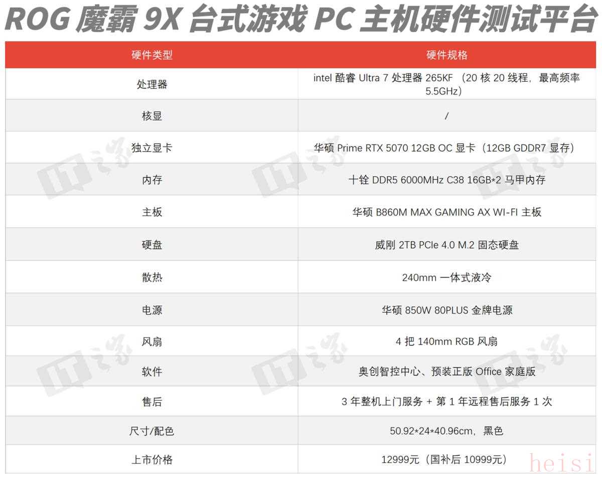 说到品牌整机,大家最关心的一定是硬件配置跟性能表现,最担心的一定是厂商会不会“偷工减料”,所以这次咱们先聊性能。IT之家拿到的这台 ROG 魔霸 9X,搭载了最新一代英特尔酷睿 Ultra 7 处理器 265KF + 英伟达 GeForce RTX 5070 显卡的主流组合,再配上 16GBx2 DDR5 6000MHz 马甲内存和 2TB PCIe4.0 固态硬盘,还有 850W 金牌电源,不仅能在 1080P 分辨率下发挥出色游戏性能,也能在 2K 分辨率下爽玩主流大型游戏。