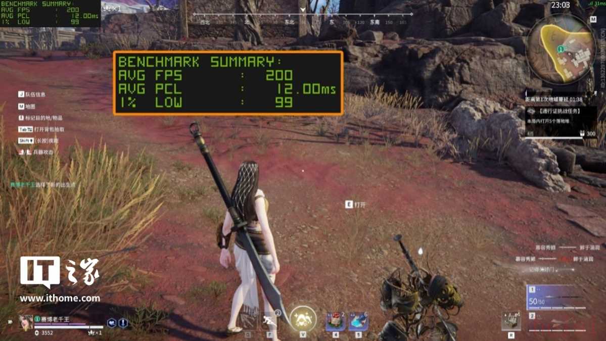 第二款游戏《永劫无间》,以 1080P 分辨率 + 高画质预设,进行一局单排战场玩法,游戏平均帧数为 200 帧,1% Low 99 帧。